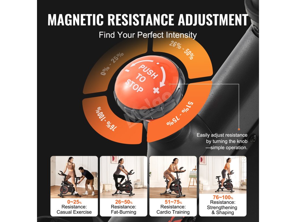 Tento nastavitelný magnetický stacionární trenažér je vybaven prvotřídním pevným setrvačníkem s vysokou odolností pro hladkou a konzistentní jízdu. Tichý řemenový pohonný systém zajišťuje odolnost a tichý provoz. Systém magnetického odporu umožňuje nastavit úroveň odporu podle vašich potřeb.