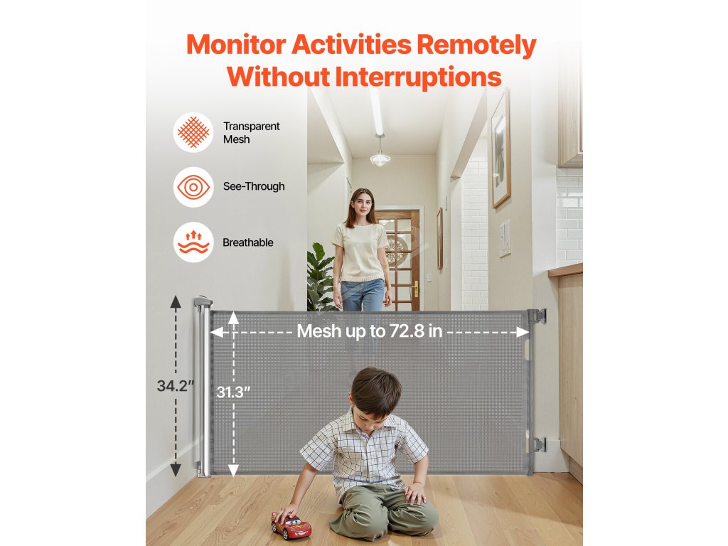 Stahovací bezpečnostní branka pro děti 1850×795 mm síťová se zámkem