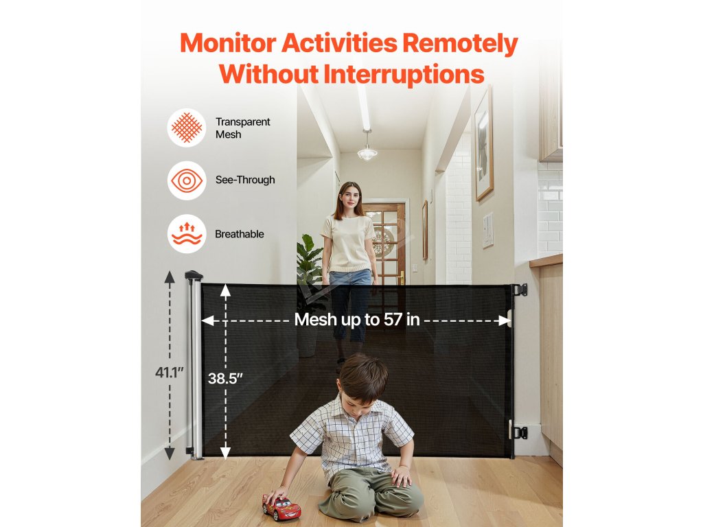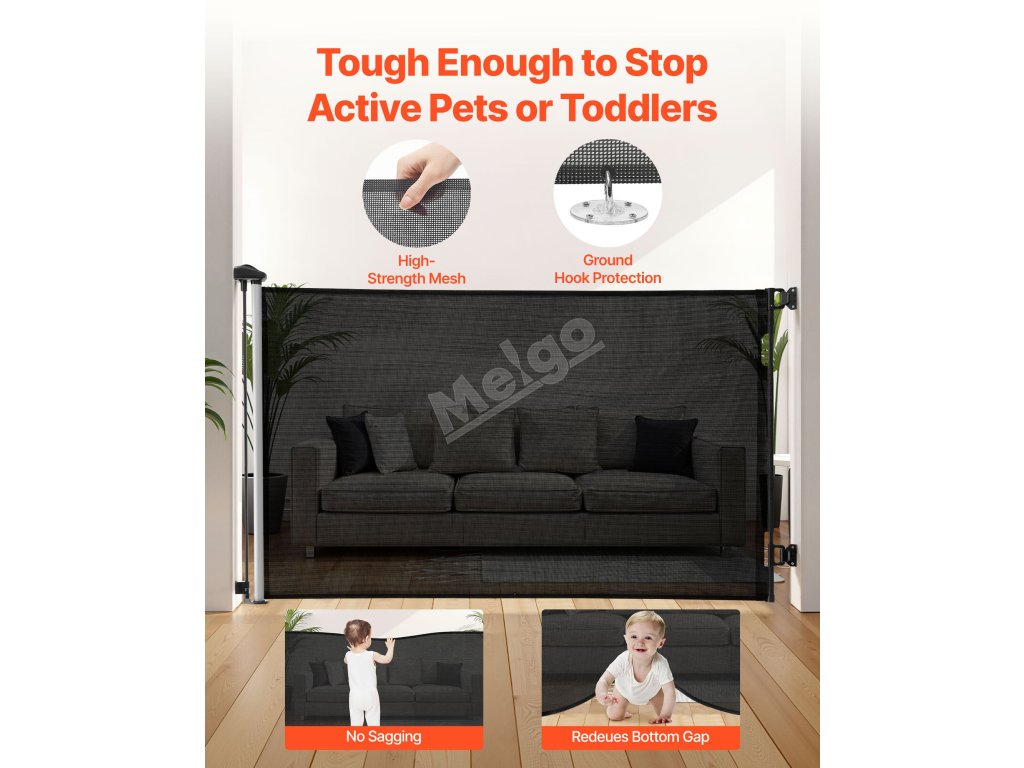 Stahovací brána pro děti síťová 1450×980 mm se zámkem pro schody