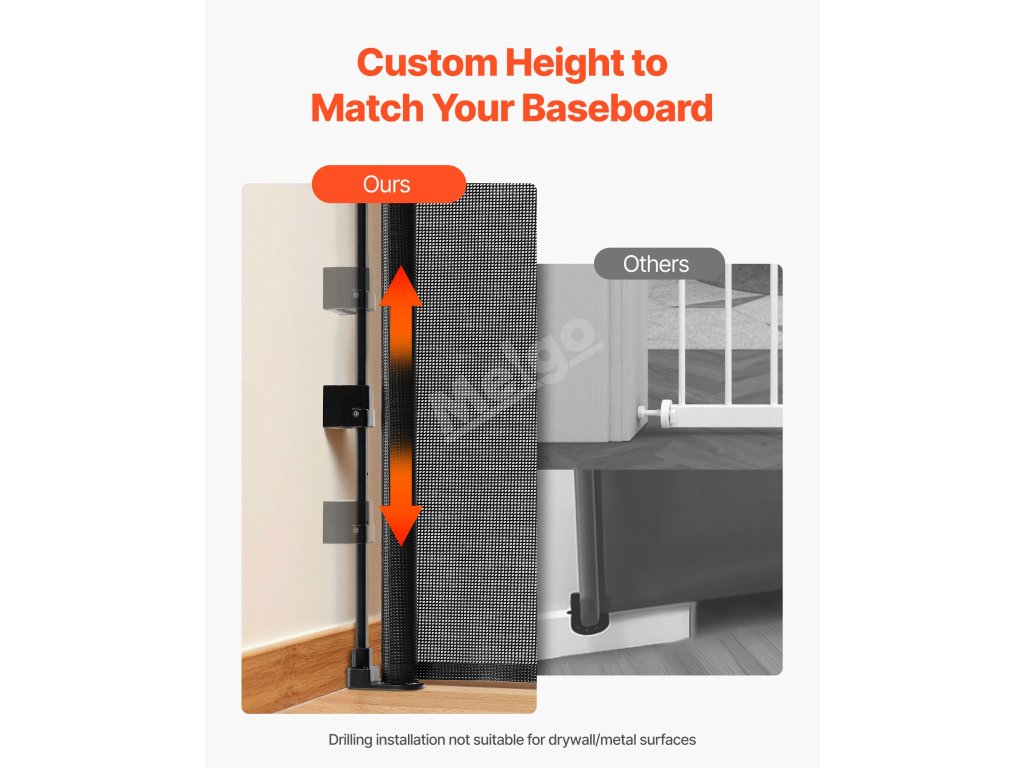 Odpověď: Ano, tato brána vyžaduje vrtání pro bezpečnou instalaci držáků na obou stranách. Není vhodná pro sádrokartonové nebo kovové povrchy.