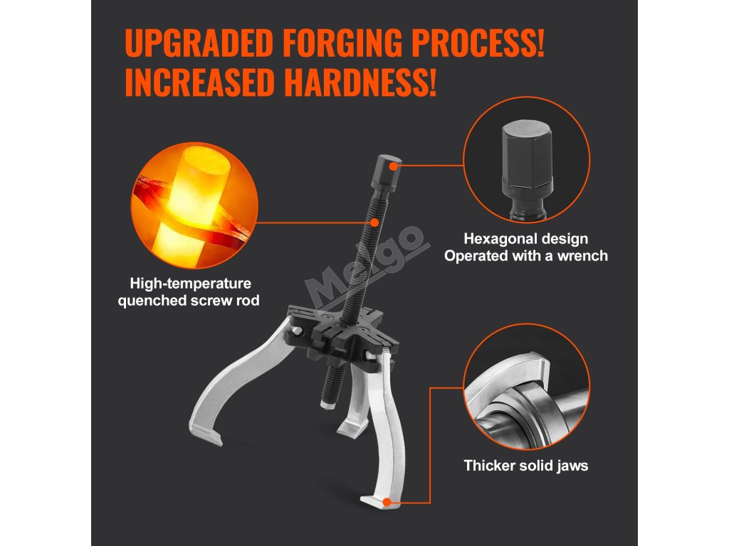 Stahovák ozubených kol je vyroben s průmyslovou pevností, má šroubovou tyč kalenou a kovanou při vysoké teplotě a přesně opracované čelisti pro vynikající odolnost a přilnavost.