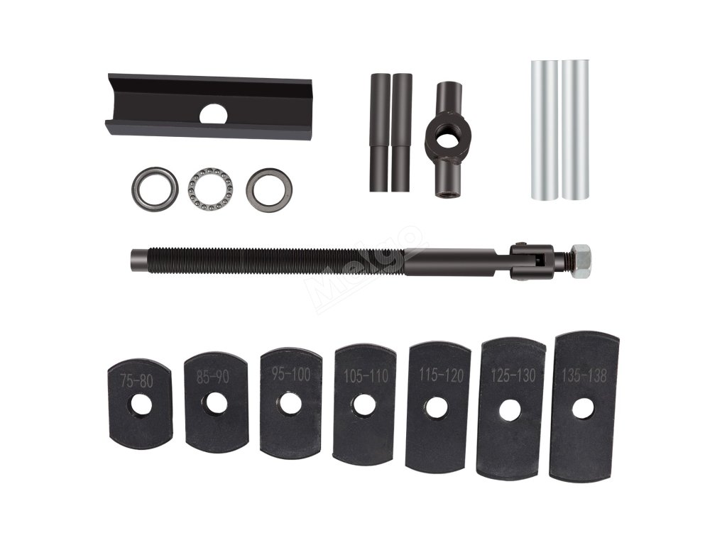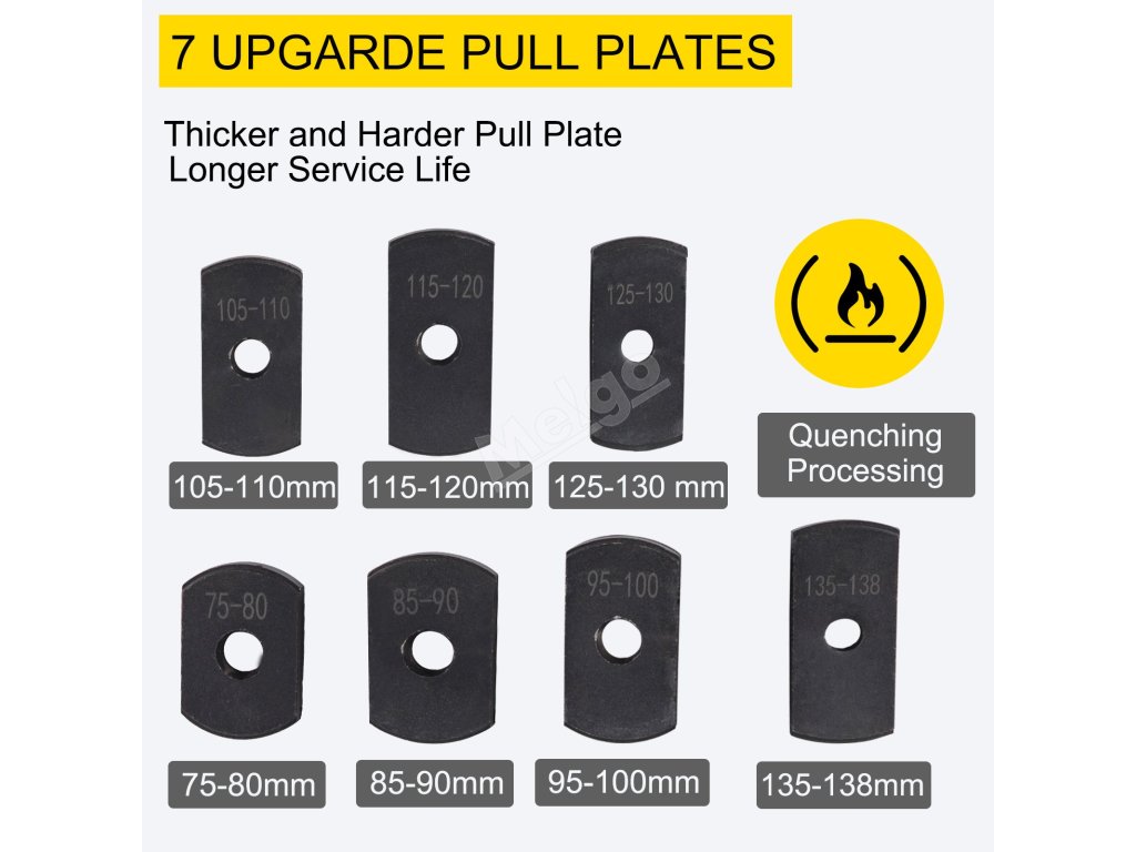 7 stahovacích desek (75-80 mm, 85-90 mm, 95-100 mm, 105-110 mm, 115-120 mm, 125-130 mm, 135-138 mm) může vyhovět vašim potřebám pro demontáž vložek válců různých velikostí.