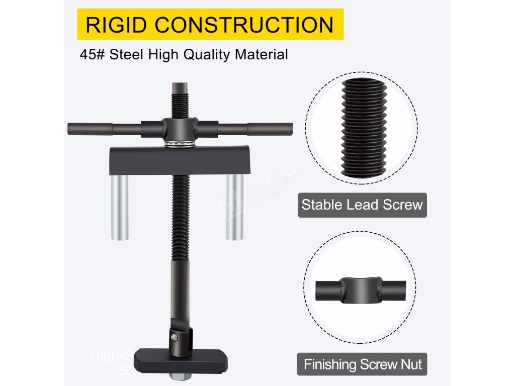 Celý výrobek a výsuvné desky jsou vyrobeny z oceli o síle 45 mm, která je pevná a odolná. Stabilní vodicí šroub a dokončovací matice šroubu zefektivňují provoz.