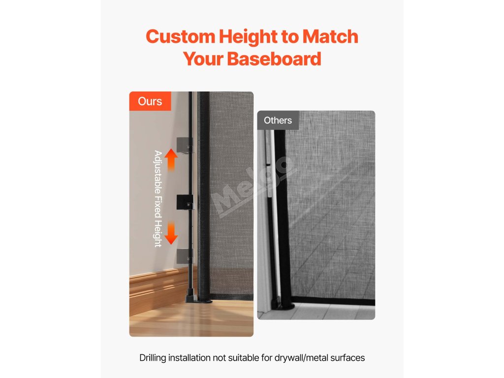 Odpověď: Ano, tato brána vyžaduje vrtání pro bezpečnou instalaci držáků na obou stranách. Není vhodná pro sádrokartonové nebo kovové povrchy.