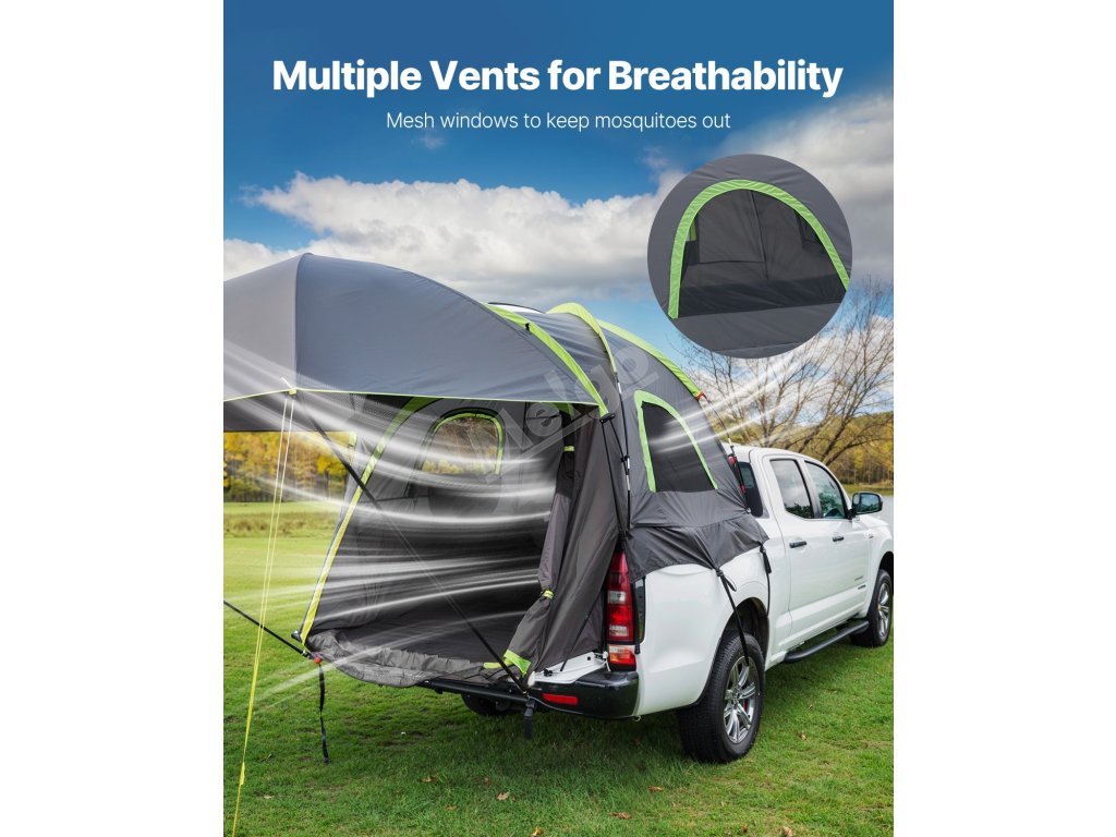 Náš kempinkový stan pro nákladní automobily má síťovaná okna, která podporují vynikající proudění vzduchu, udržují čerstvý a chladný vzduch a zároveň chrání před komáry.