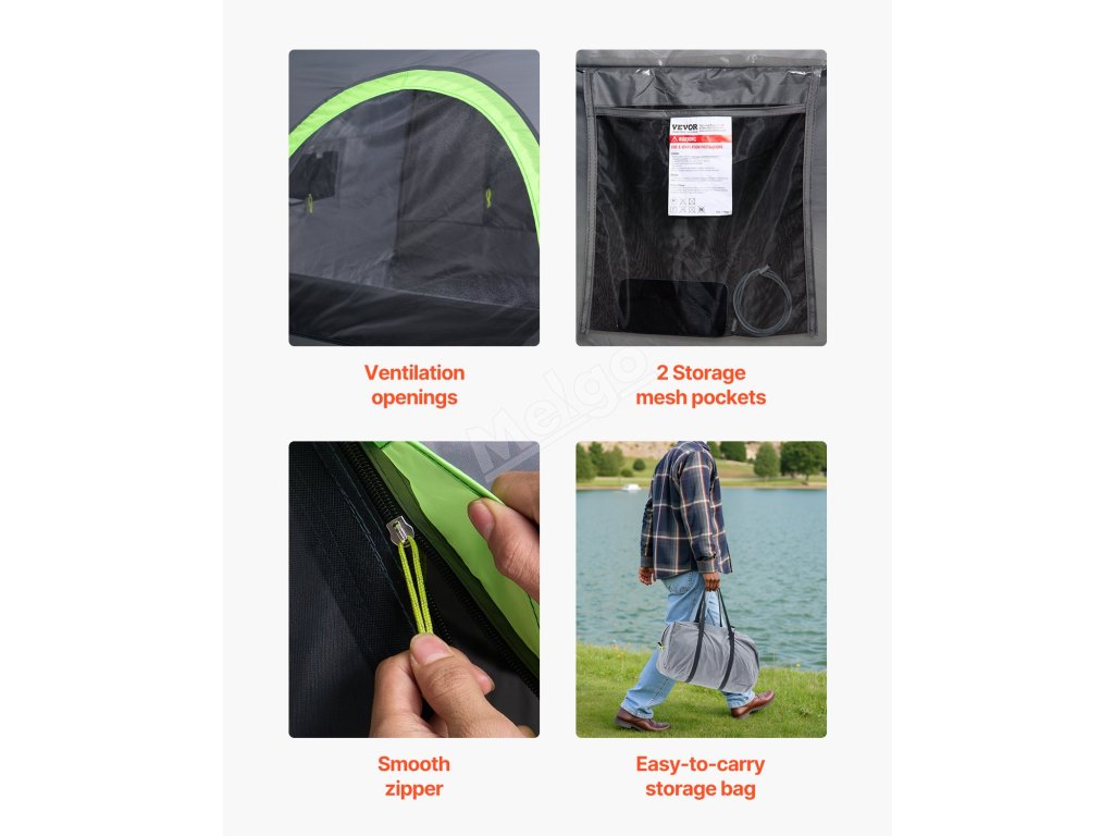 Díky sklolaminátovým tyčím a příslušenství s háčky, které jsou součástí balení, zvládne zručný člověk postavit stan pro kempování v nákladním autě za méně než 20 minut. Při prvním stavění si nezapomeňte pečlivě přečíst návod k montáži.