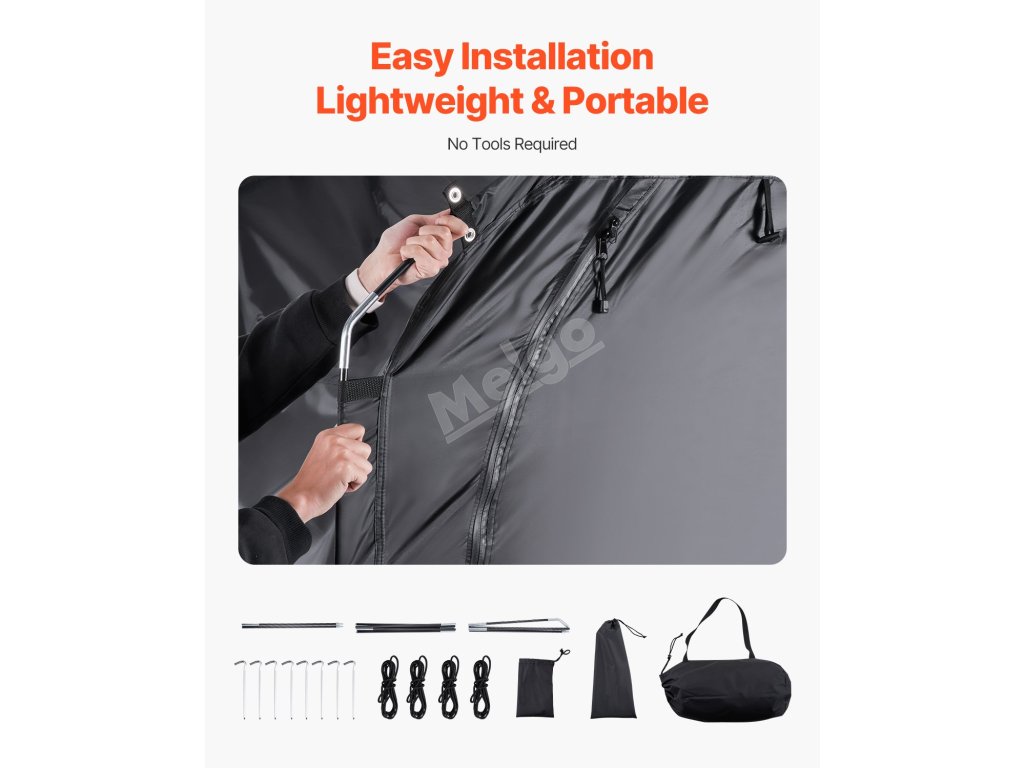 Náš přístřešek na kolo je opatřen dvouvrstvou nepromokavou vrstvou a tkaninou Oxford 210D se stříbrnou vrstvou, která zajišťuje odolnost. Robustní rám ze skelných vláken zajišťuje stabilitu, zatímco jeho lehká konstrukce umožňuje rychlé sestavení. Větrací okénka udržují interiér v suchu a svěžesti.