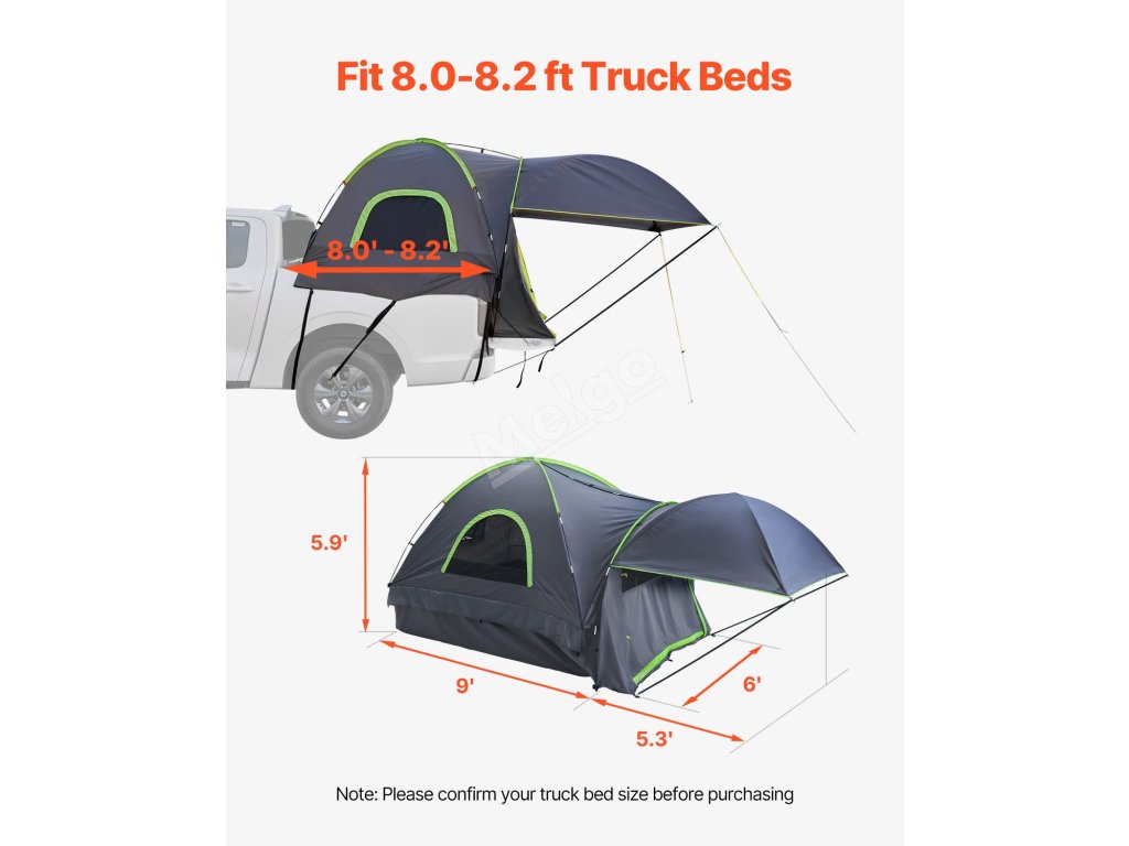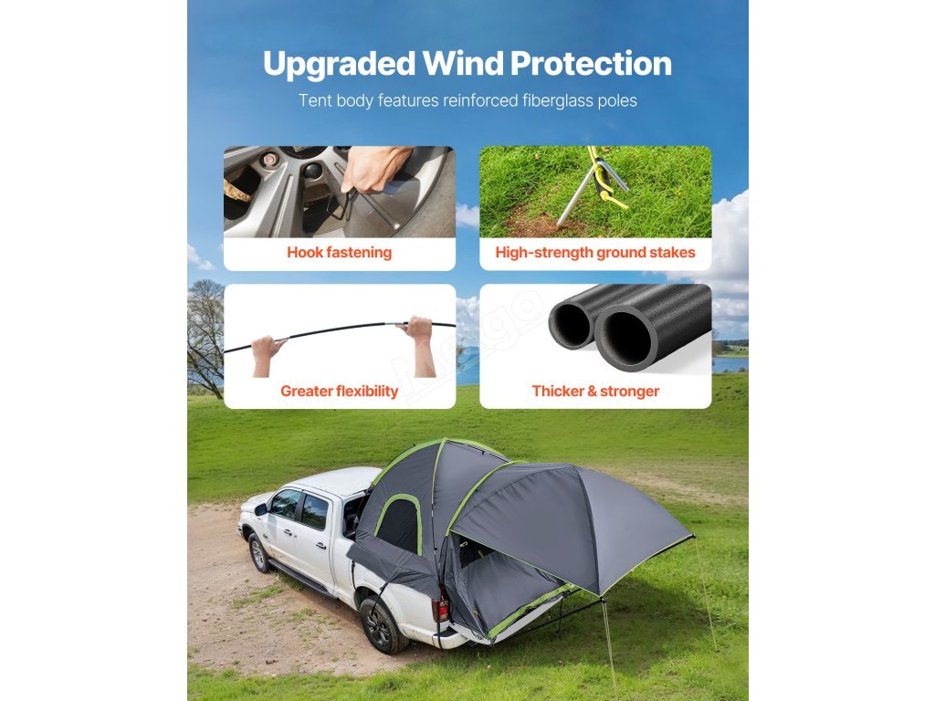 Stan na lůžko pro nákladní automobily je vyroben z odolné tkaniny 210D Oxford s pevným prošitím a vodotěsnou úpravou PU2000, která pomáhá blokovat teplo a zároveň chrání před deštěm, čímž zajišťuje suchý a pohodlný prostor uvnitř.