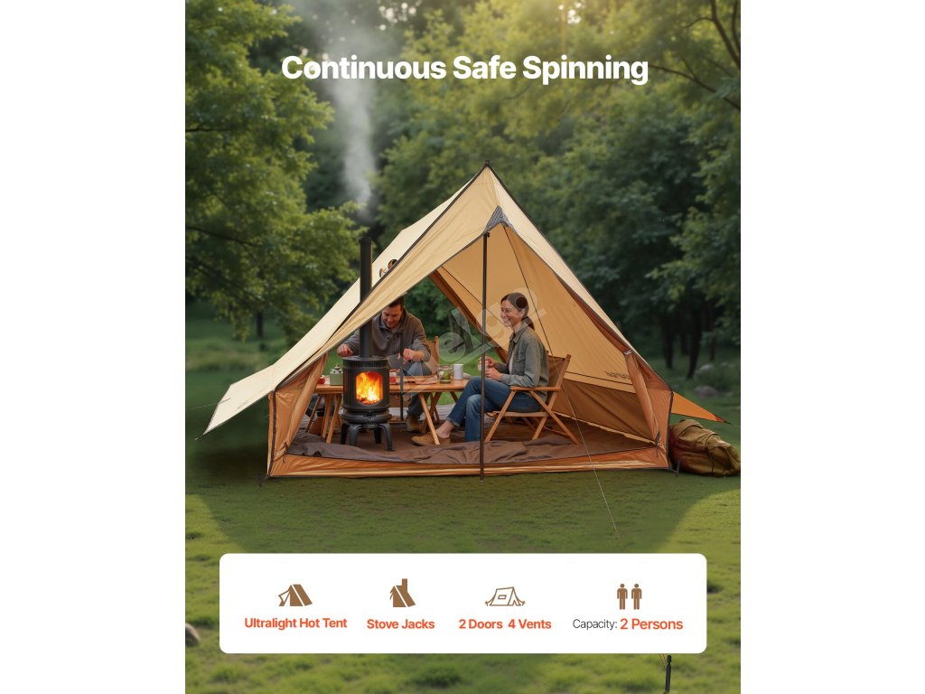 Vyzkoušejte horkovzdušný stan s tyčemi - je určen pro outdoorové táborníky, kteří dávají přednost bezpečí a pohodlí. Zesílené podpěrné tyče zajišťují silnou odolnost proti větru, takže stan je spolehlivý i v náročném počasí. Prostorný prostor nabízí dostatek místa pro rodinné vaření, odpočinek a společenská setkání.