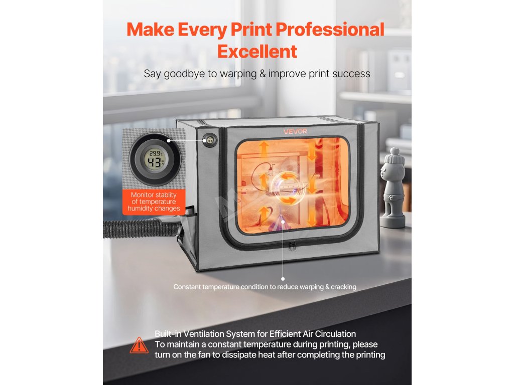 Tento kryt 3D tiskárny s nehořlavým interiérem pro spolehlivé použití udržuje konstantní teplotu a obsahuje ventilační systém pro rychlou výměnu vzduchu. Je odolný proti prachu a hluku a jeho průhledné okno umožňuje sledování v reálném čase pro zajištění bezproblémového tiskového provozu.
