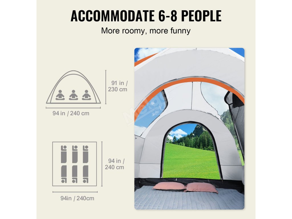 Kempingový stan VEVOR SUV je navrhnutý na jednoduché zostavenie, čo zaručuje bezstresový začiatok vášho kempovania. Priložené pokyny sú vo všeobecnosti jasné a stručné. To znamená, že proces montáže rýchlo pochopia aj tí, ktorí kempujú prvýkrát. Nastavenie je jednoduché na používanie. S tyčami a návodmi strávite menej času a máte viac času na vychutnávanie si pobytu v prírode.