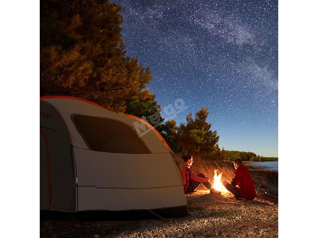Okrem toho môžete počas spánku vytiahnuť dažďovú plachtu mimo stanu, čo vám poskytuje flexibilitu v závislosti od počasia. Túto konštrukciu možno použiť dvoma spôsobmi. Umožňuje prispôsobiť sa rôznym vonkajším podmienkam, takže môžete stanovať, kdekoľvek sa vám zapáči.