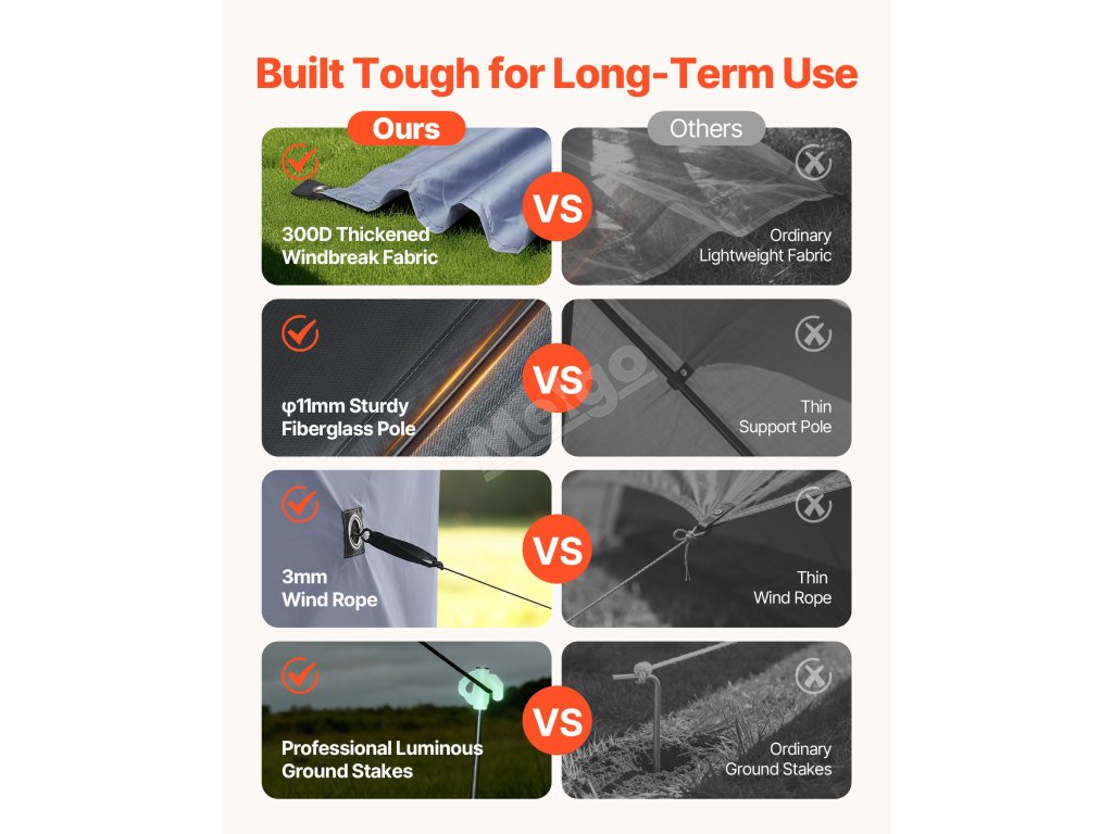 | Materiál | 70G sieťovina + zosilnená 300D oxfordská tkanina s PU povlakom + strieborná strieška + nosné tyče zo sklenených vlákien |