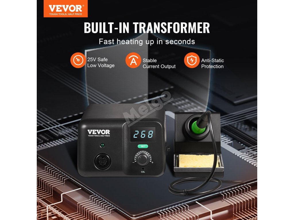 Zabudovaný profesionálny transformátor pre bezpečnejšie a efektívnejšie spájkovanie. Navrhnutý s nízkym napätím 25 V na zvýšenie bezpečnosti, stabilným prúdom s minimálnymi výkyvmi a ochranou komponentov citlivých na ESD na predĺženie životnosti zariadenia.