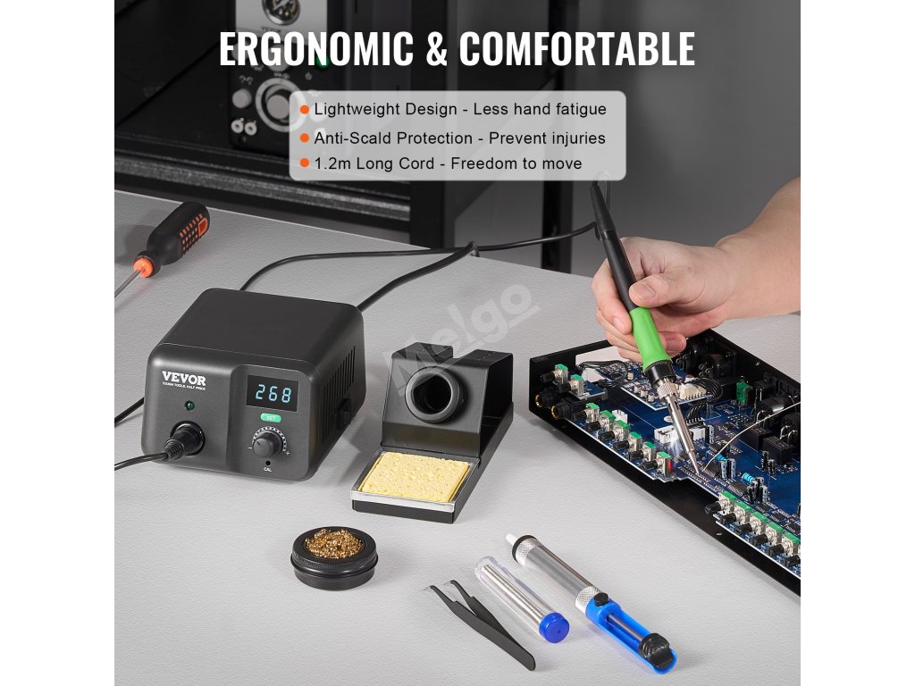 Viacnásobná bezpečnostná ochrana zabezpečuje efektívne a stabilné spájkovanie! Táto 70W spájkovacia stanica je vybavená vstavaným transformátorom, nastaviteľnou teplotou, inteligentnou reguláciou teploty PID a automatickým režimom spánku. Je bezpečná a spoľahlivá - ideálna pre profesionálov aj domácich majstrov.