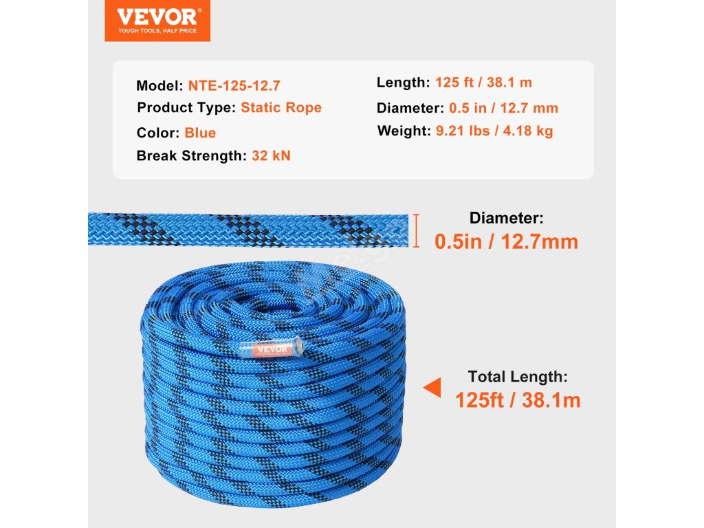 Statické horolezecké lano VEVOR - vaše bezpečnost je naše odpovědnost!
