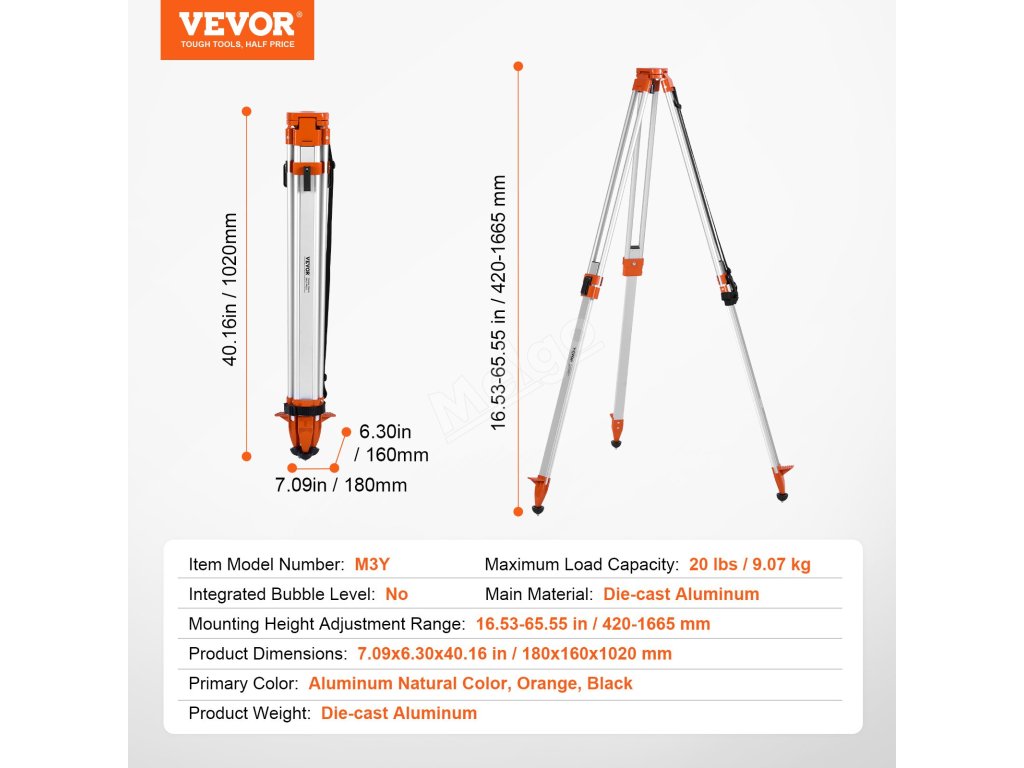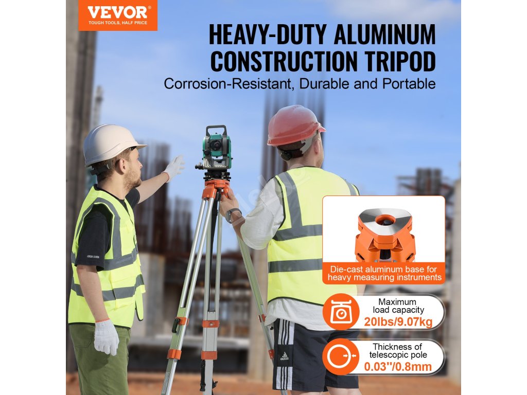 Stativ VEVOR je vyroben z prvotřídního hliníku, takže je pevný a odolný pro dlouhodobé používání bez opotřebení. Výška je nastavitelná tak, aby vyhovovala různým potřebám měření. Kompatibilní s liniovými lasery, bodovými lasery a laserovými měřiči vzdálenosti, které se hojně používají ve stavebnictví a při zařizování interiérů.