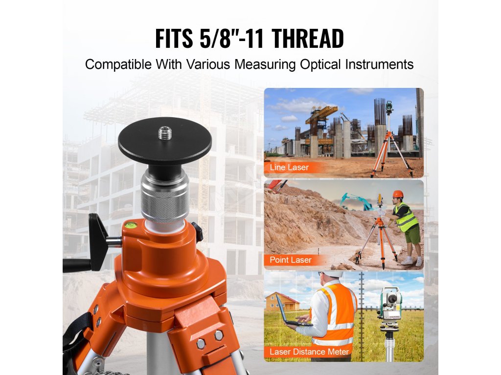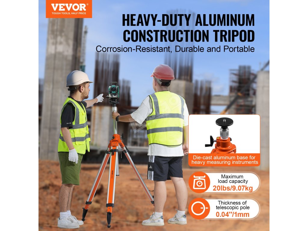 Stativ VEVOR je vyroben z prvotřídního hliníku, takže je pevný a odolný pro dlouhodobé používání bez opotřebení. Výška je nastavitelná tak, aby vyhovovala různým potřebám měření. Kompatibilní s liniovými lasery, bodovými lasery a laserovými měřiči vzdálenosti, které se hojně používají ve stavebnictví a při zařizování interiérů.