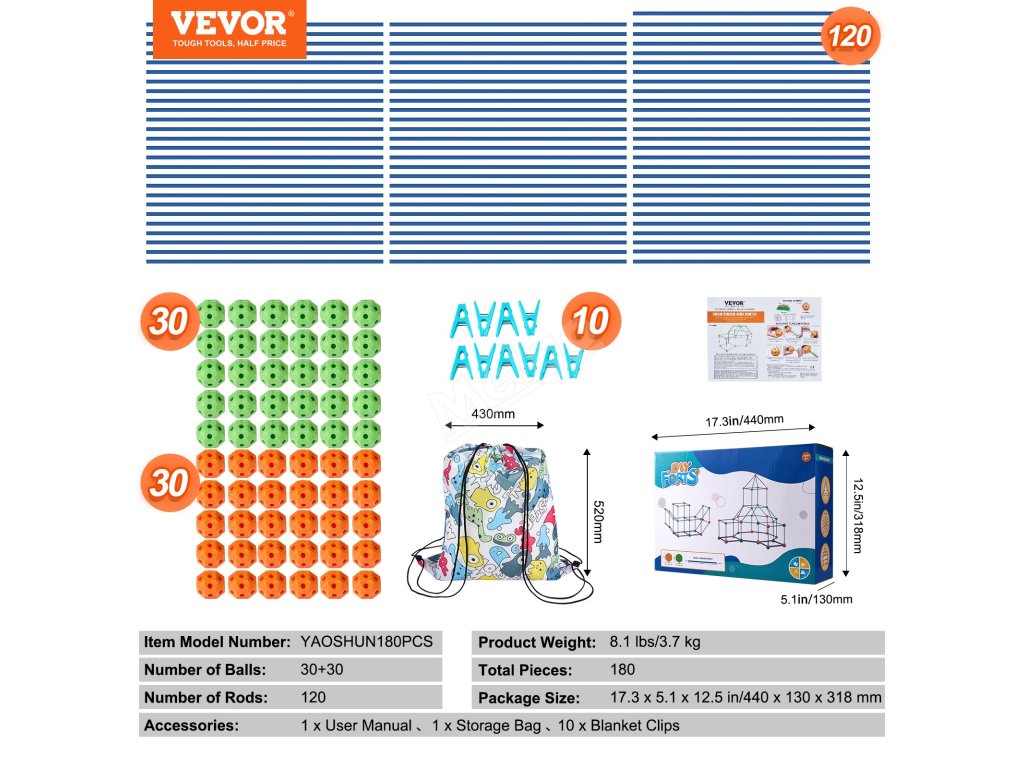 Užijte si skvělou hodnotu s naší stavebnicí VEVOR. Obsahuje další díly, robustní konstrukci (bez BPA) a je vybavena praktickou úložnou kapsou a klipy na deky.