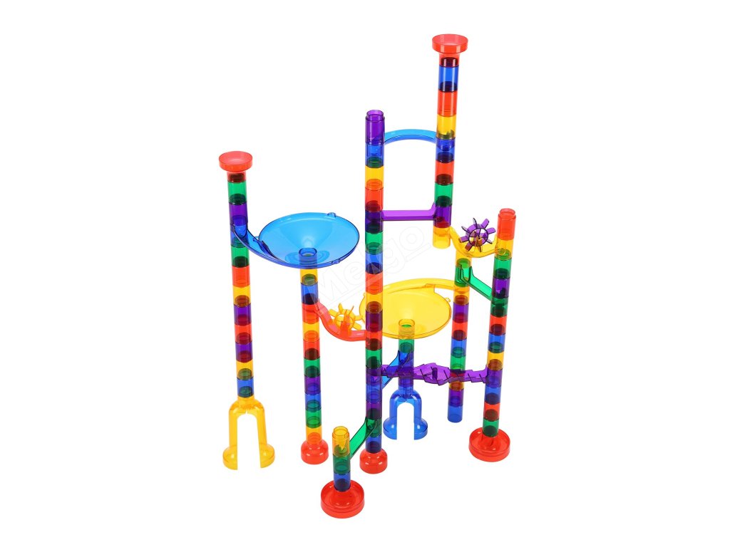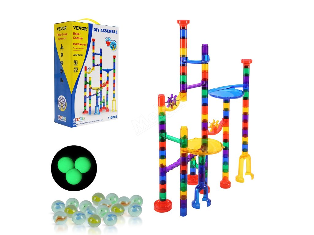 Stavebnice dráha na kuličky 110 dílů, 10 svítících a 20 skleněných