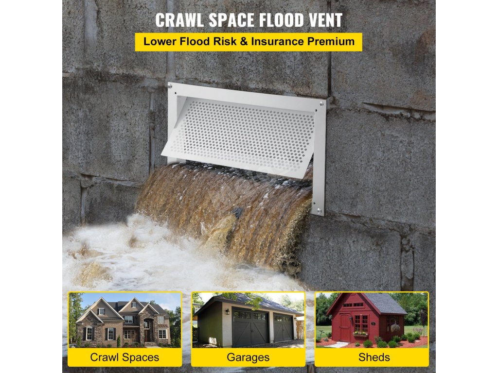 Záplavový ventilátor VEVOR je dômyselne navrhnutý tak, aby znižoval riziko záplav. Má špeciálne prieduchy, ktoré umožňujú povodňovej vode voľne prúdiť dovnútra a von. To pomáha uvoľňovať tlak z nahromadenej vody počas povodní. Tento tlak by inak mohol poškodiť základy vášho domu. Nielenže chráni váš dom pred škodami spôsobenými povodňami, ale môže viesť aj k nižším nákladom na poistenie.
