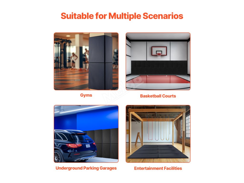 Toto polstrování stěn tělocvičny je vyrobeno z prvotřídního PVC materiálu a je odolné proti opotřebení a roztržení, takže časem nevybledne ani se nezkroutí. Plochá konstrukce velkých rozměrů umožňuje kombinovat více polštářků a vyplnit tak celé stěny, což snižuje nárazy pro sportovce. Snadná instalace, která zajišťuje bezpečnost během hry.