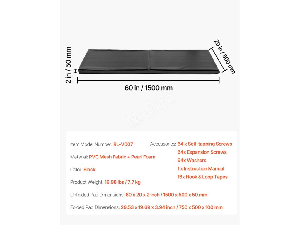 | Rozměry rozložené podložky | 60 x 20 x 2 palce / 1500 x 500 x 50 mm |