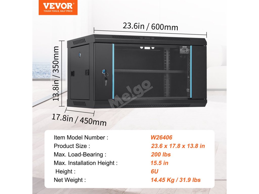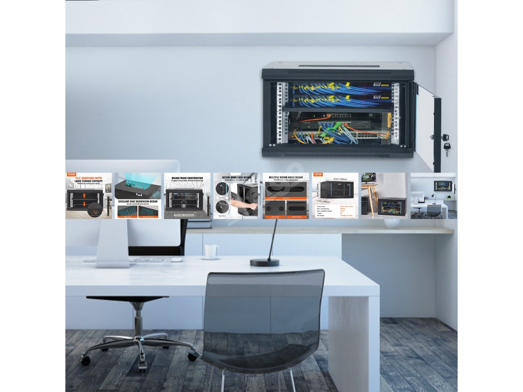 Síťová skříň VEVOR 6U rychle odvádí teplo a poskytuje profesionální služby ukládání síťových zařízení. Je ideální volbou pro omezené prostory, jako jsou prodejny, učebny, zázemí kanceláří, síťové skříně atd.