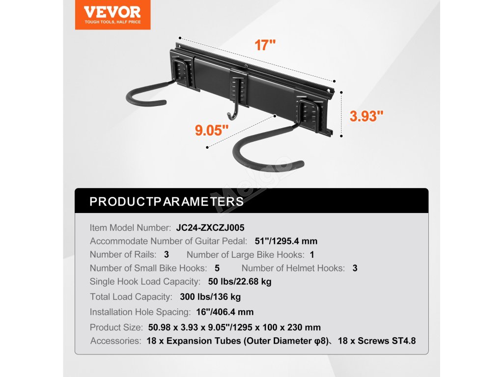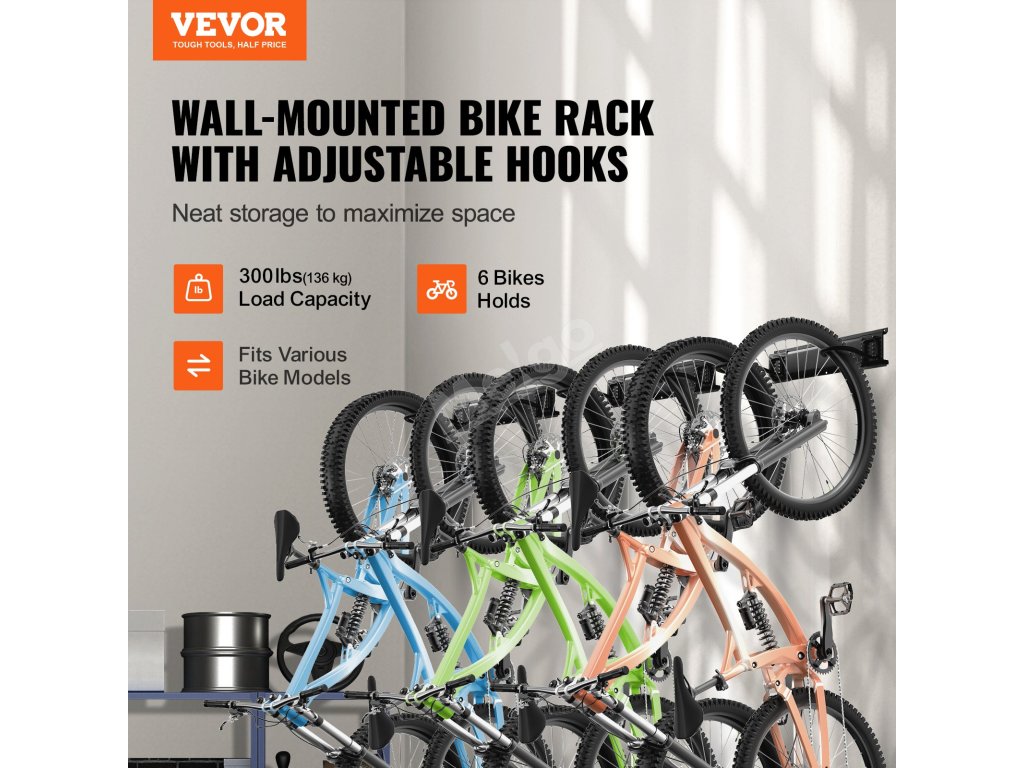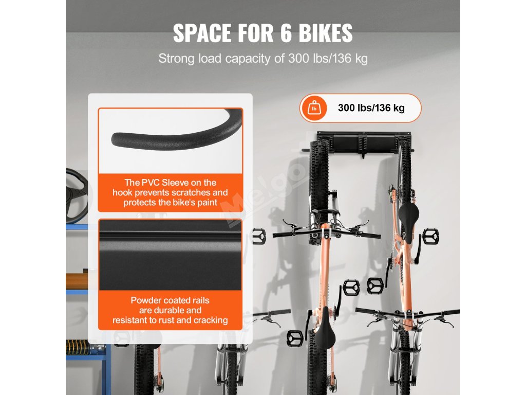 Stěnový držák na 6 kol, 3 háky na přilby, 300 lbs, 51-inch