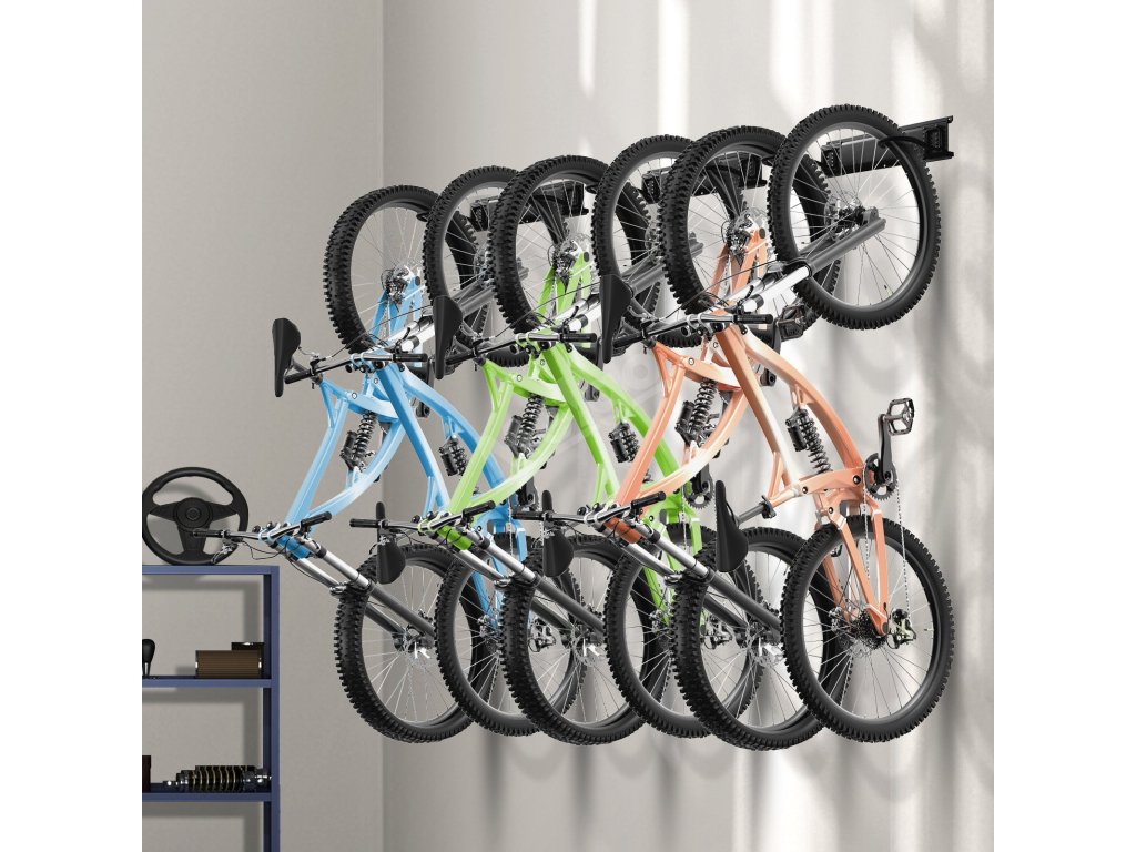 S naším podlouhlým nástěnným stojanem na kola se vám podaří dostat kola z podlahy. Nejenže díky vertikálnímu zavěšení kol na zeď uklidí váš prostor, ale také usnadní úklid.