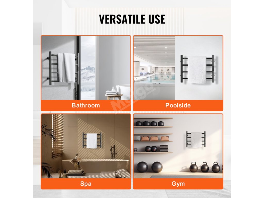 Stěnový ohřívač ručníků, 4 lišty, ipx5, časovač, 5 stupňů
