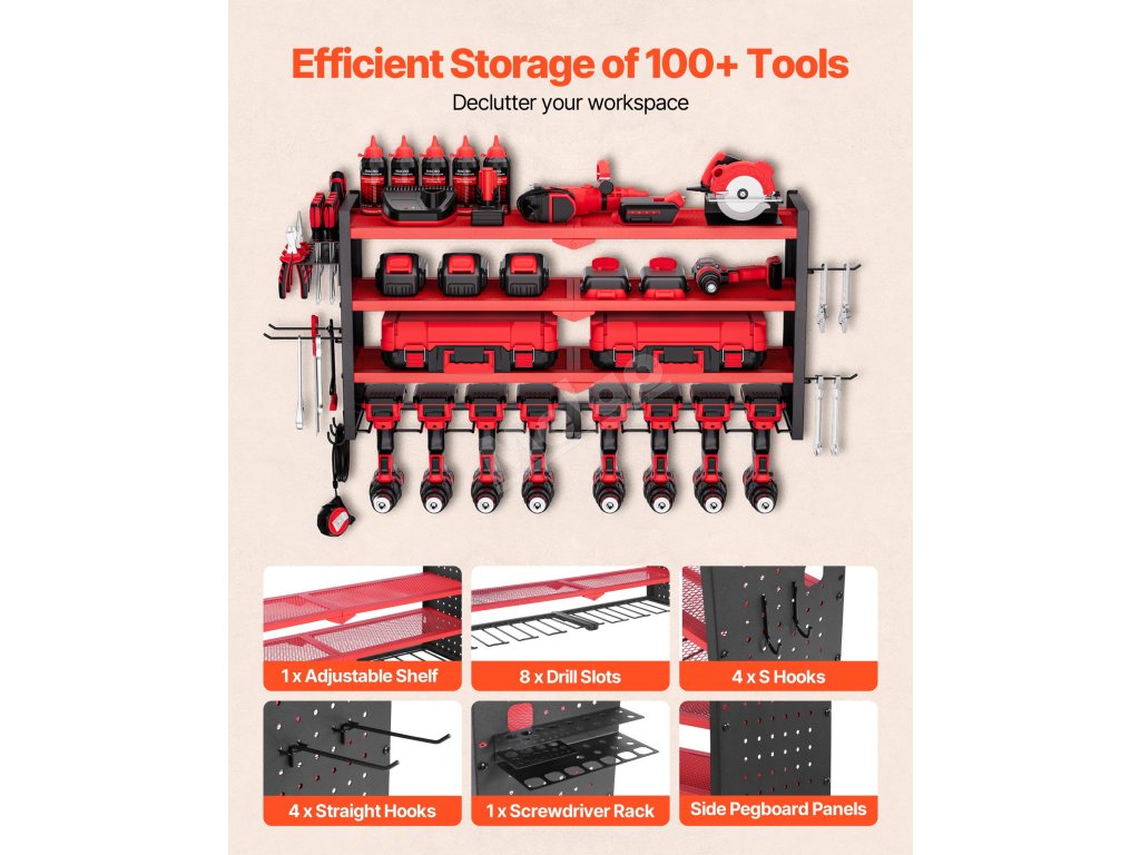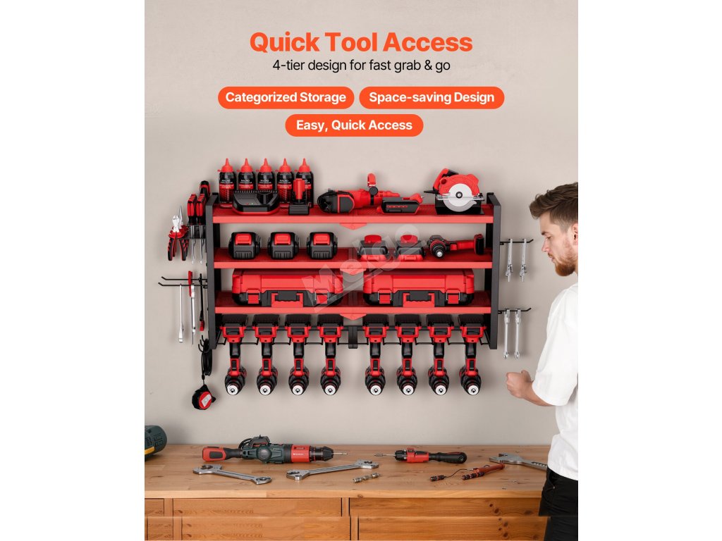 čtyřpatrový organizér na elektrické nářadí: udržujte své nářadí přehledné a dostupné