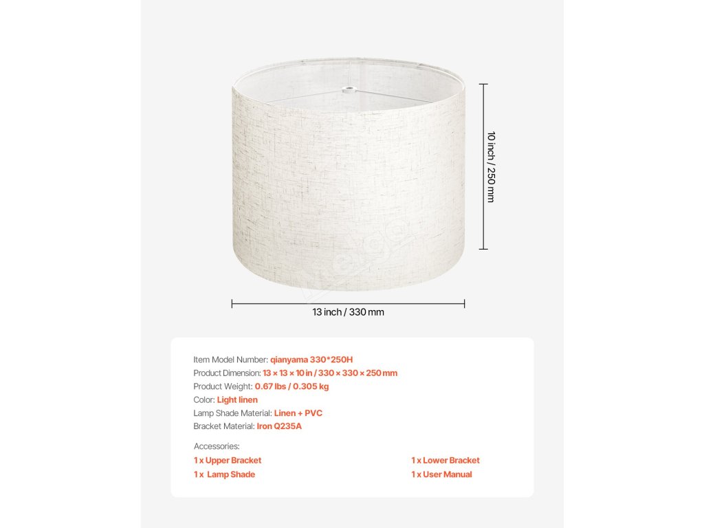 Stínítko na lampu válcové 13 in × 13 in × 10 in, lněné, pro lampy