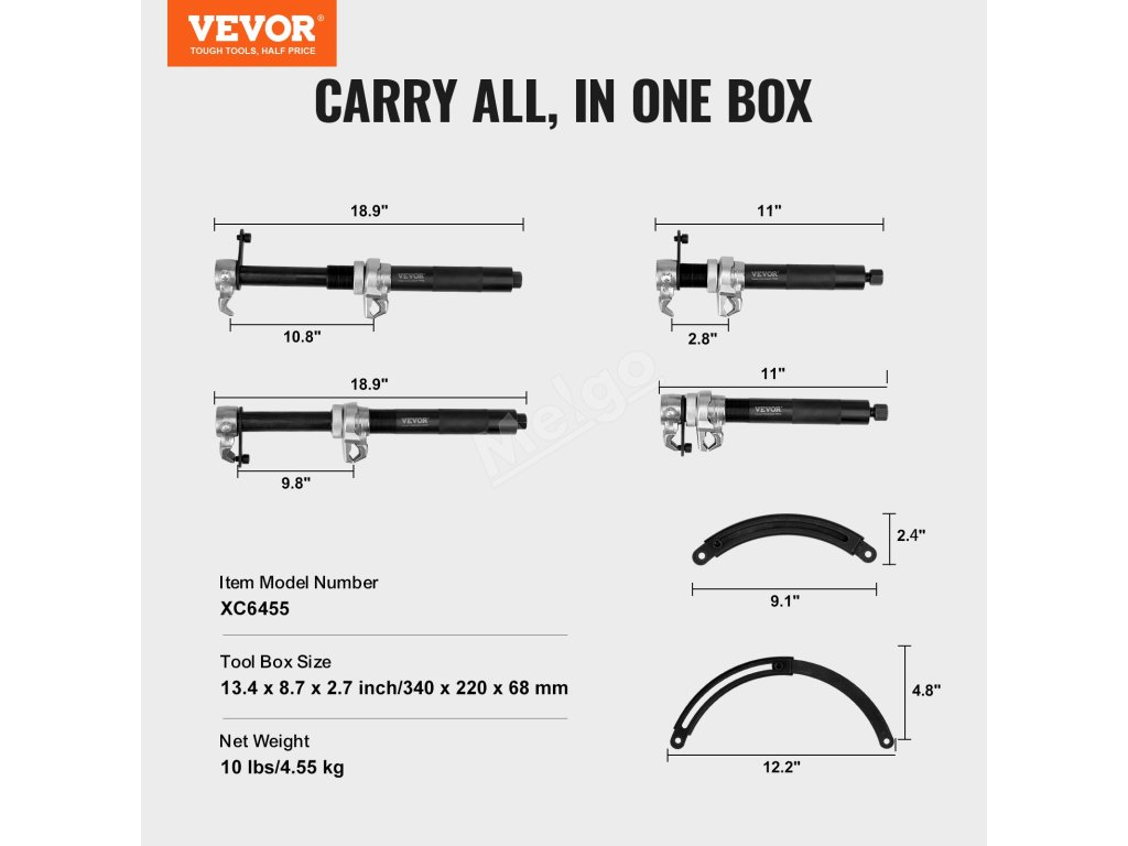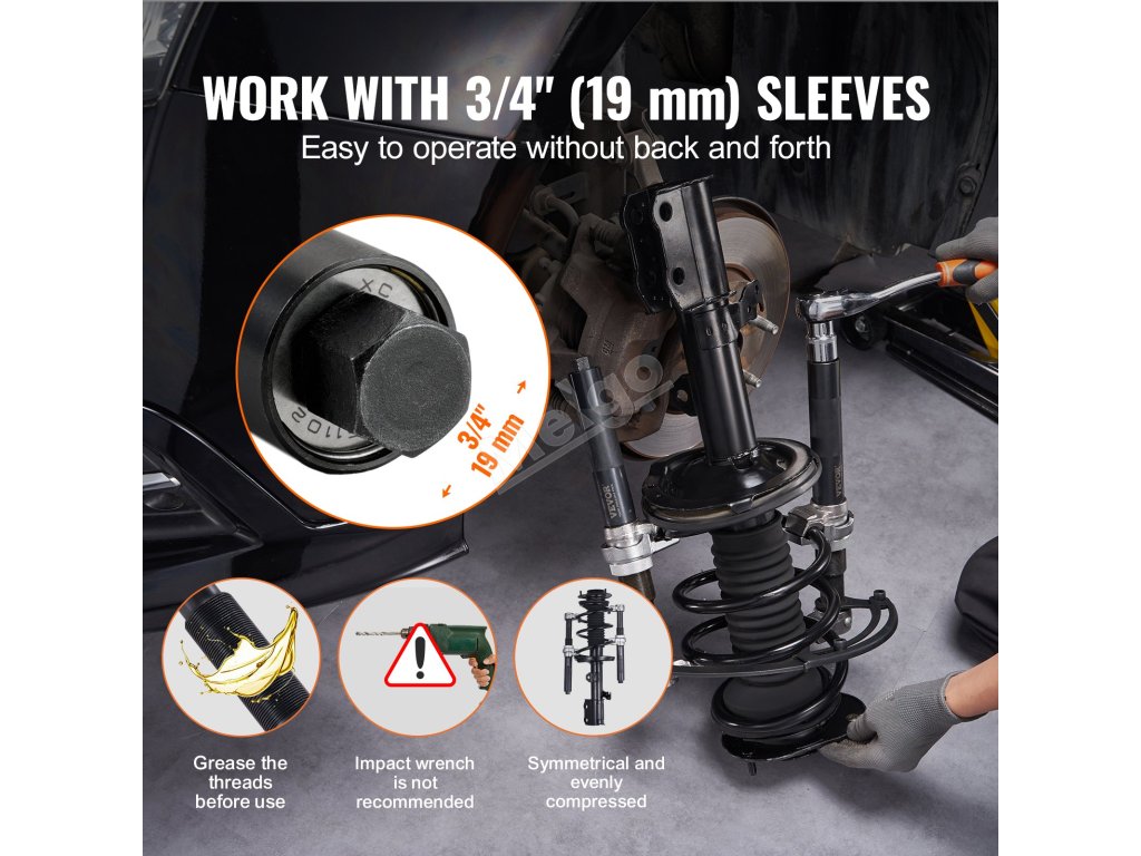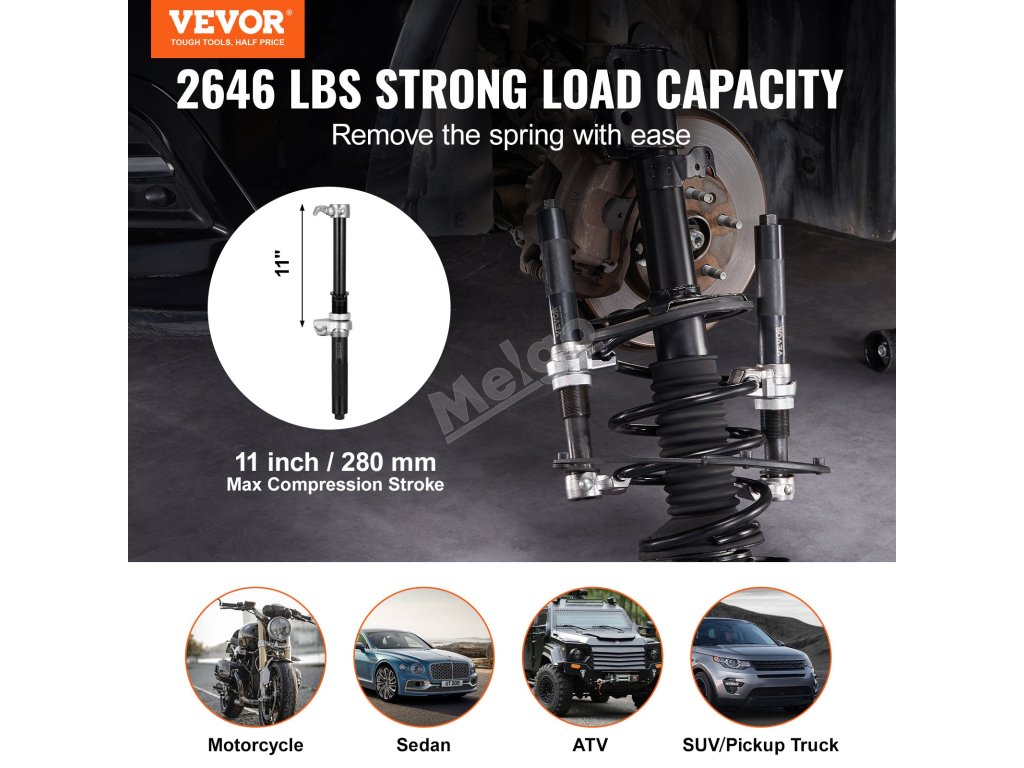 Náš kompresor pružin má nosnost 2646 liber a široký rozsah stlačitelnosti. Bez námahy odstraňuje pružiny z motocyklů, osobních a nákladních automobilů, SUV a dalších typů vozidel. Vyzkoušejte si snadnou demontáž pružin tlumičů z vašeho vozidla.