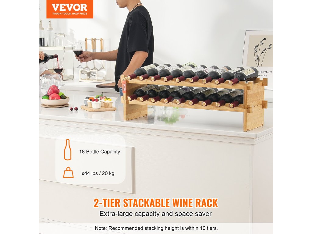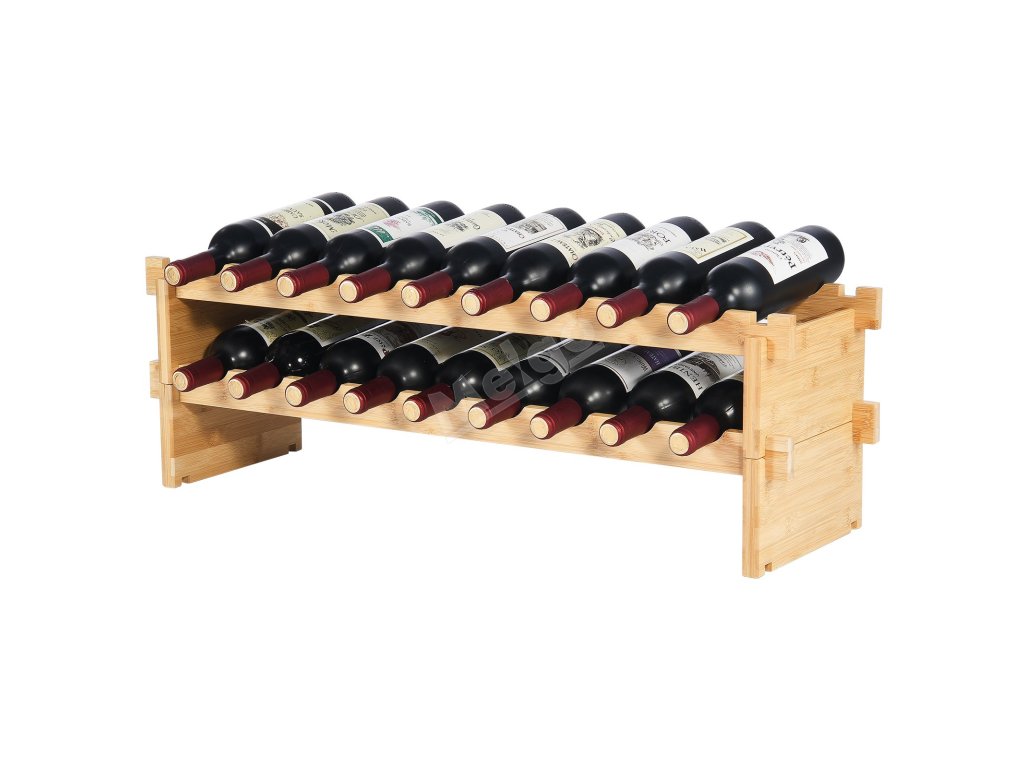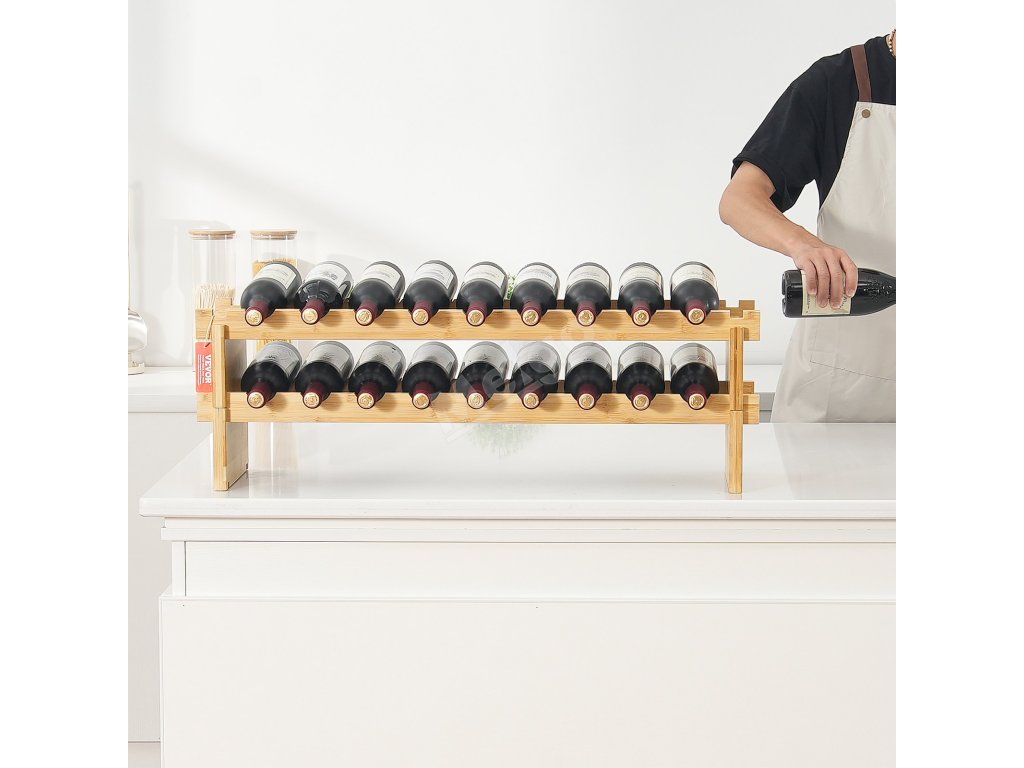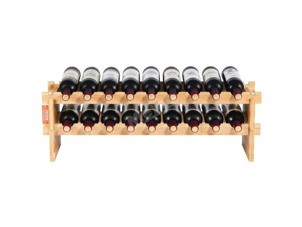 Stohovatelný bambusový regál na víno na 18 lahví, 2-patrový