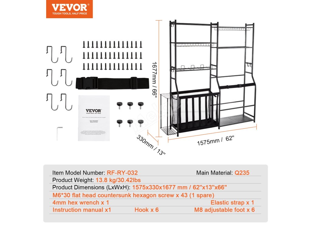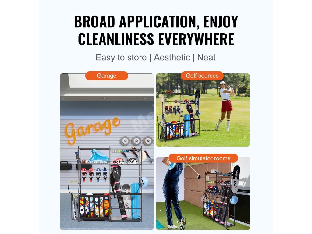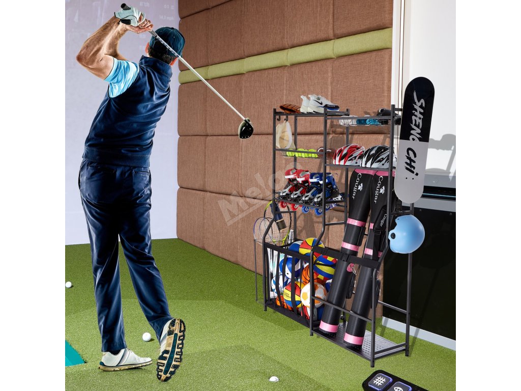 Toto praktické sportovní vybavení je ideální pro uspořádání golfového vybavení v garáži nebo na golfovém hřišti. Bez námahy udrží váš prostor uklizený a organizovaný.