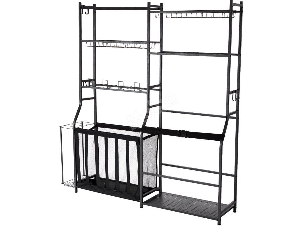 Tento garážový organizér na sportovní vybavení se dodává s různým příslušenstvím. Všechny tyto úložné doplňky pomáhají udržovat pořádek ve sportovním vybavení, zajišťují přehledné uspořádání předmětů a skutečně šetří místo.