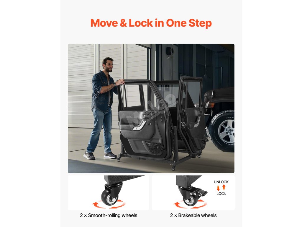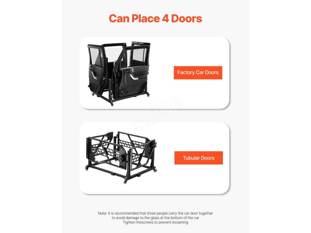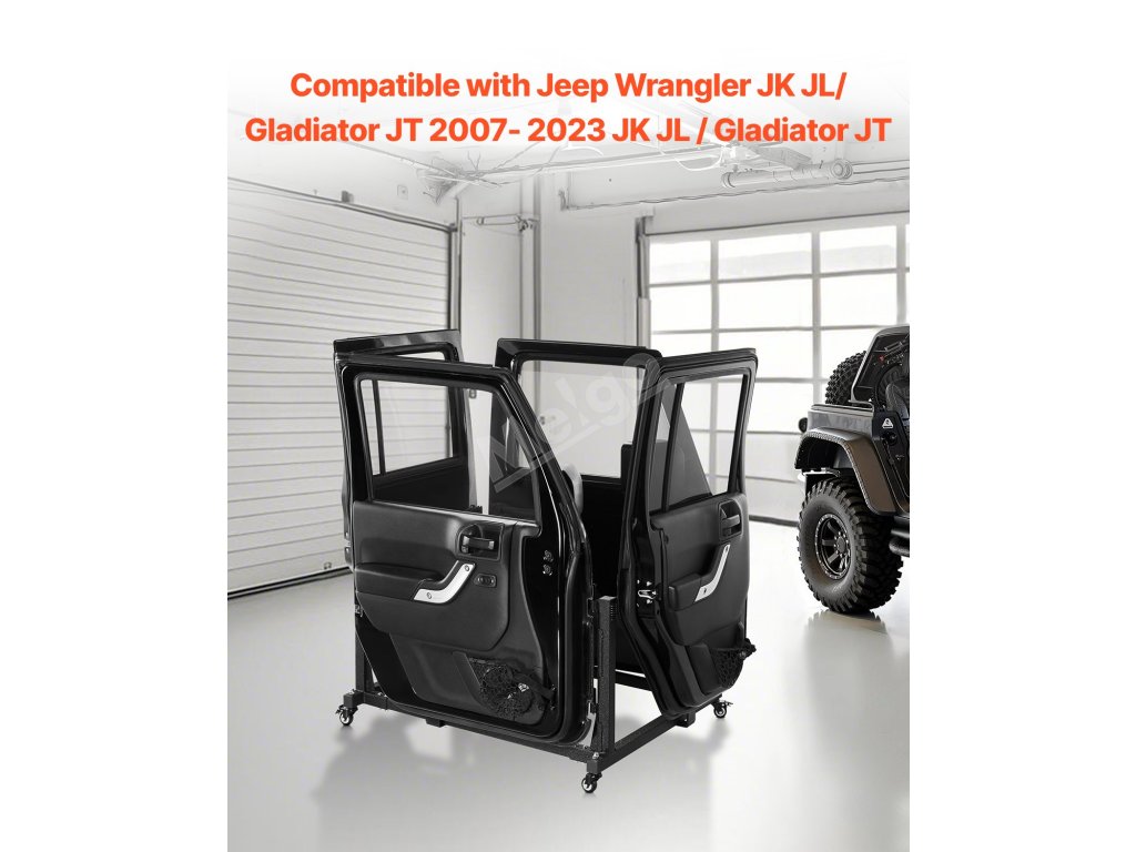 Tato ocelová konstrukce je určena pro uložení dveří vozů Jeep Wrangler JK, JL, Gladiator JT 2007-2023, nabízí pevnou oporu, snadnou mobilitu a ochranu dveří. Majitelům vozidel Jeep poskytuje pohodlné, bezpečné a efektivní řešení pro úpravy vozidla, údržbu a dlouhodobé skladování dveří.