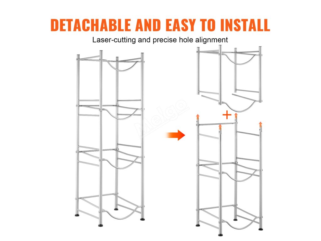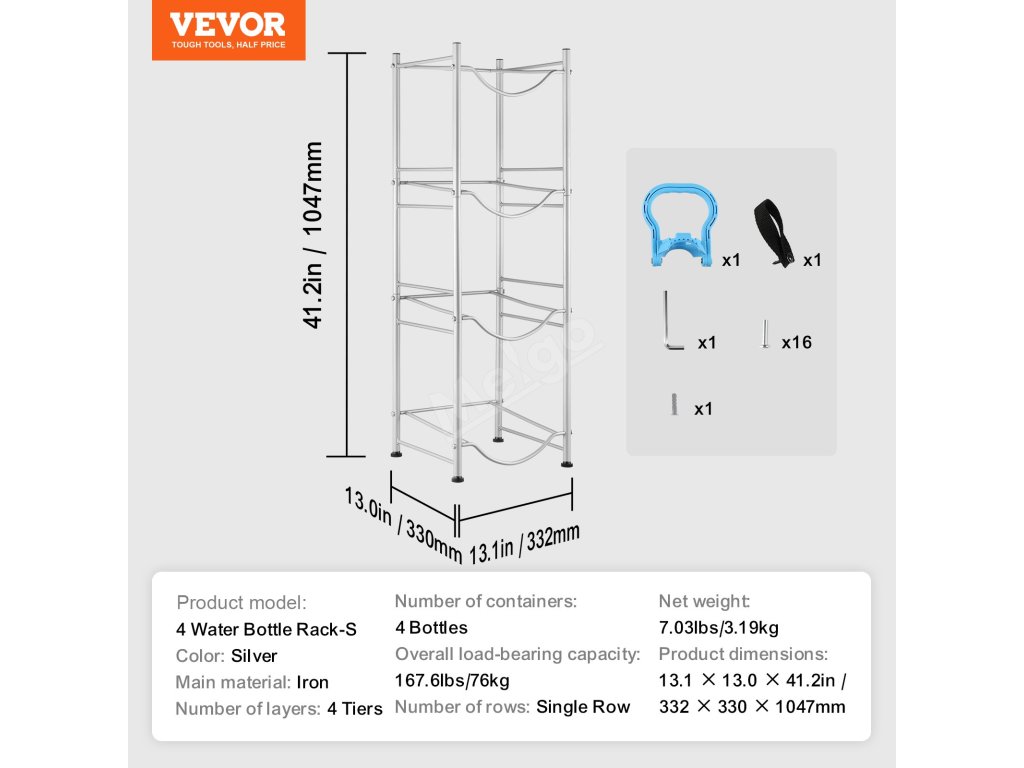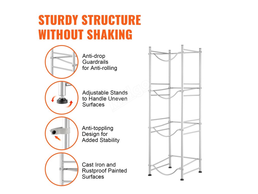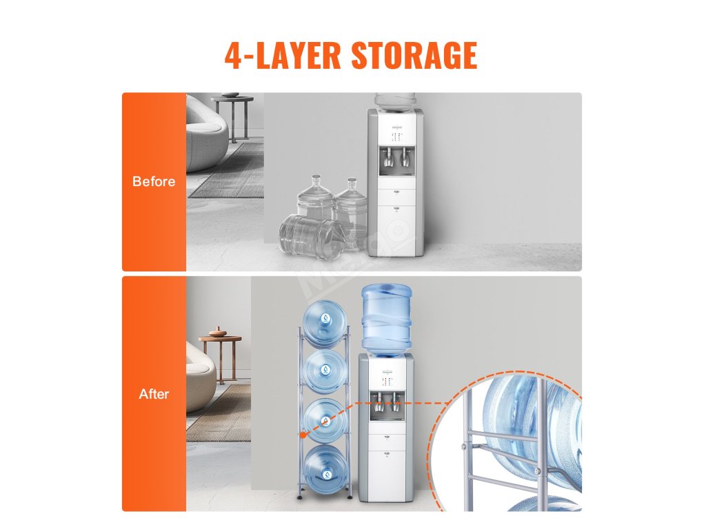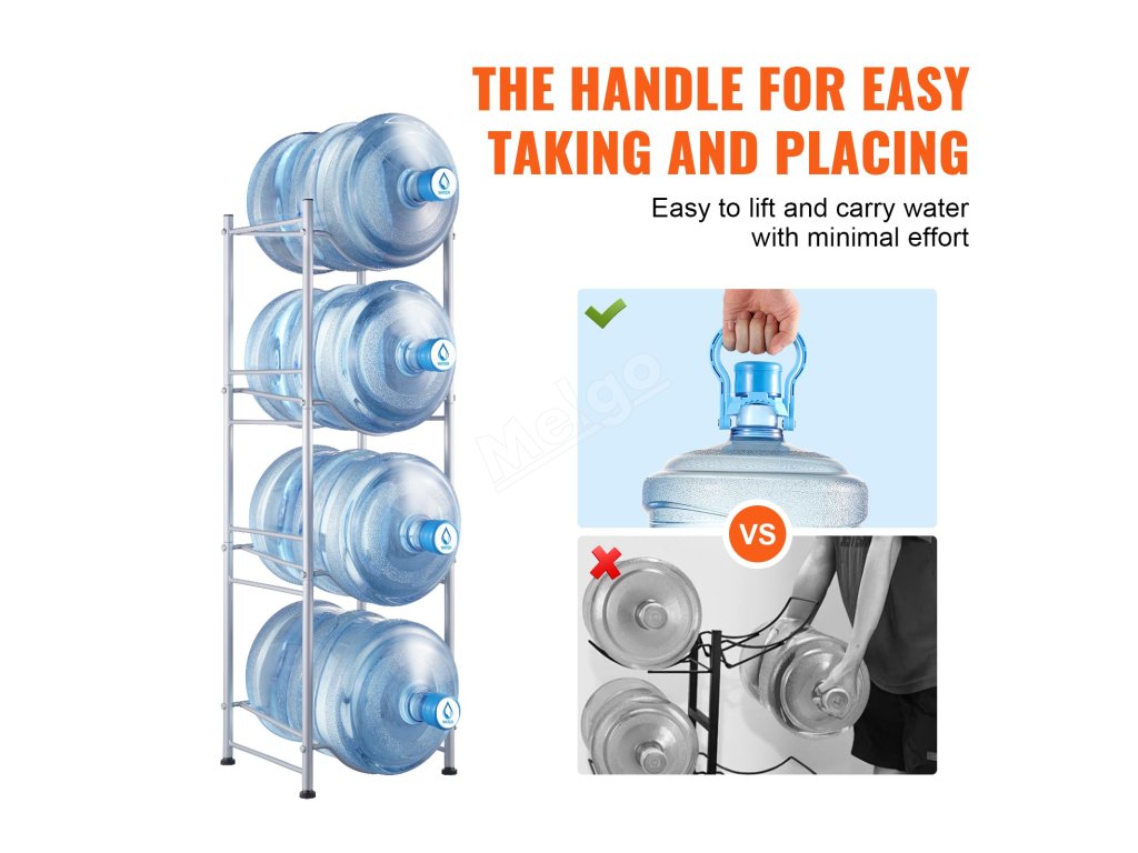 Stojan na džbány na vodu je ideální do obývacích pokojů, skladovacích prostor, kuchyní, garáží, spíží, šaten, prádelen, tělocvičen a kanceláří. Poskytuje efektivní řešení pro uložení více lahví.