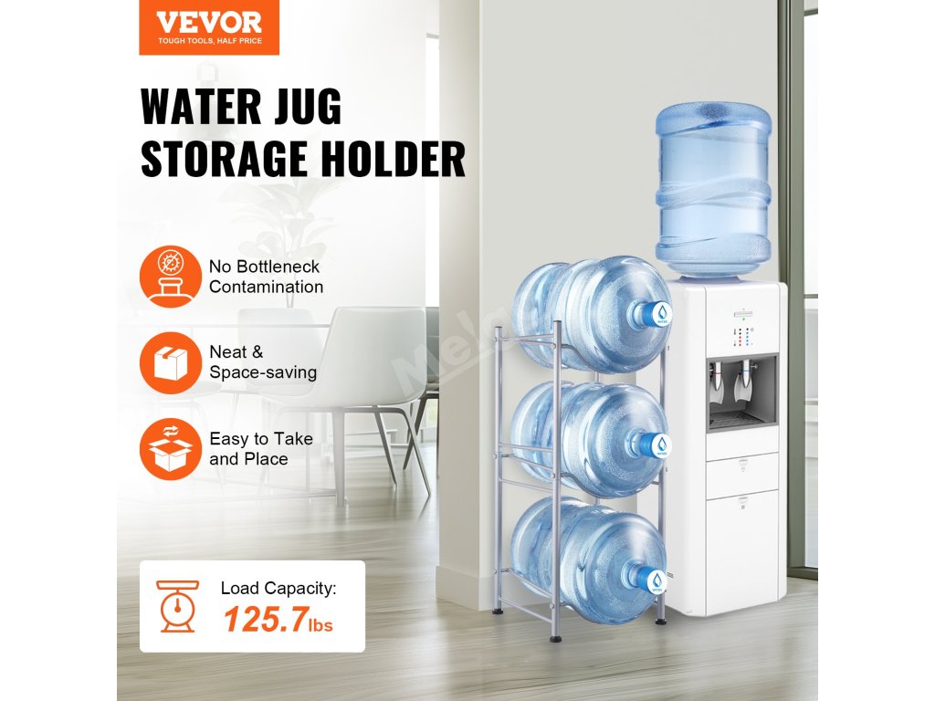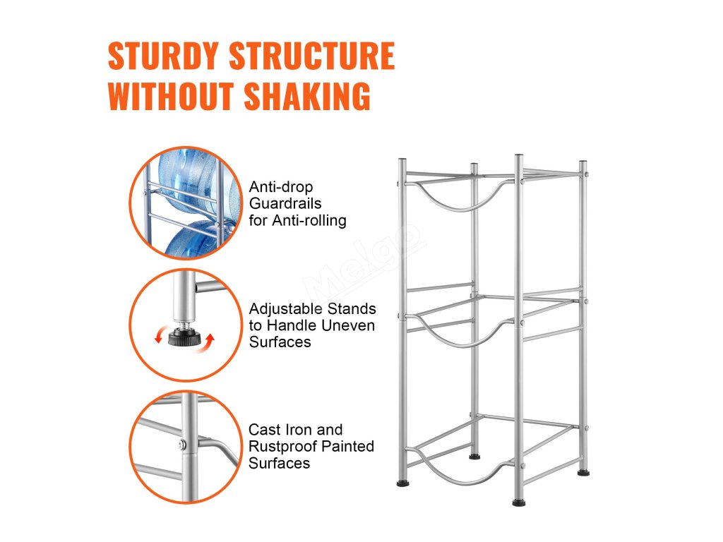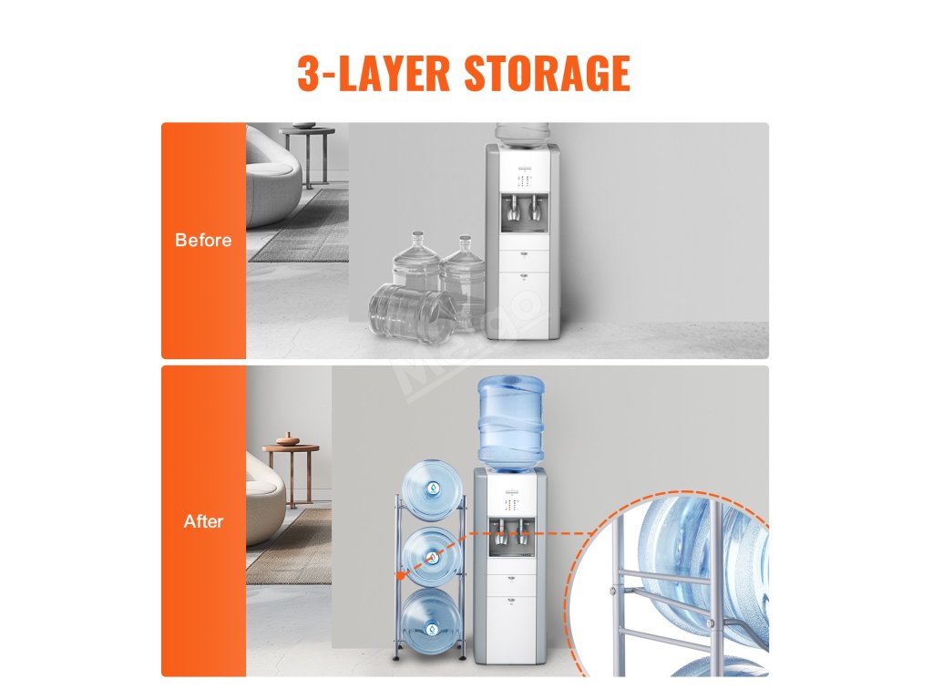 Stojan na džbány na vodu je ideální do obývacích pokojů, skladovacích prostor, kuchyní, garáží, spíží, šaten, prádelen, tělocvičen a kanceláří. Poskytuje efektivní řešení pro uložení více lahví.