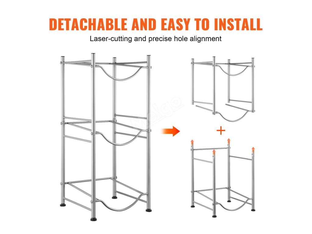 Laserem vyřezané otvory zajišťují přesnou a snadnou montáž. Stojan na láhve s vodou je navíc odnímatelný, takže si můžete počet úrovní upravit podle potřeby.