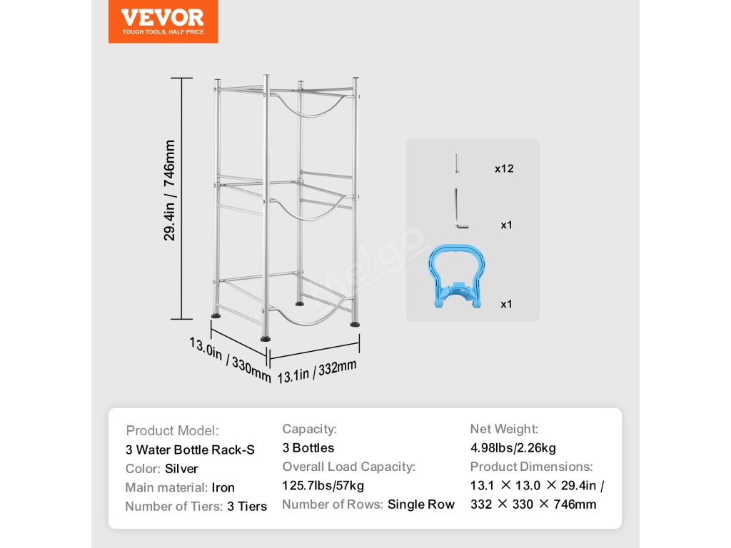 Tento třípatrový držák na džbány na vodu má rozměry 13 x 13 x 29 palců, pojme až 3 láhve a unese až 125,7 kg. Jeho minimalistický průmyslový design se hodí do různých interiérů, takže je ideální volbou do jakéhokoli prostoru.