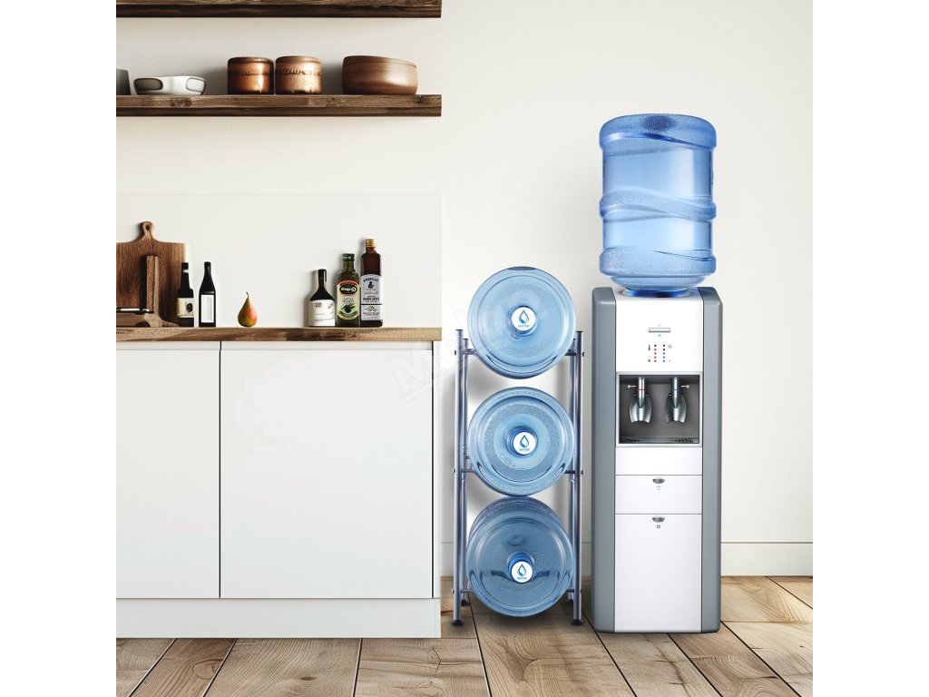 Stojan na 5 gallon láhve, jednořádkový kovový držák pro 3 ks