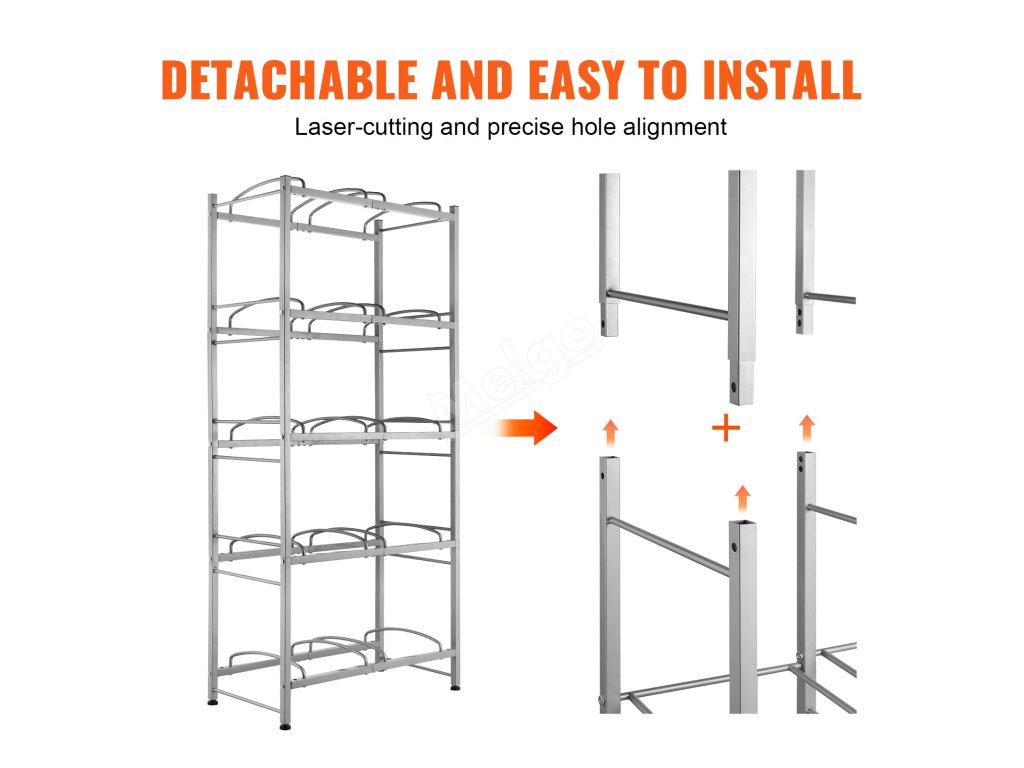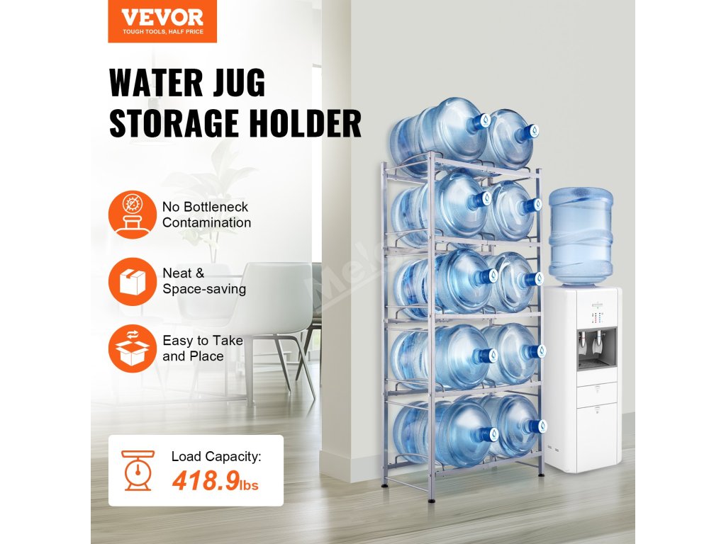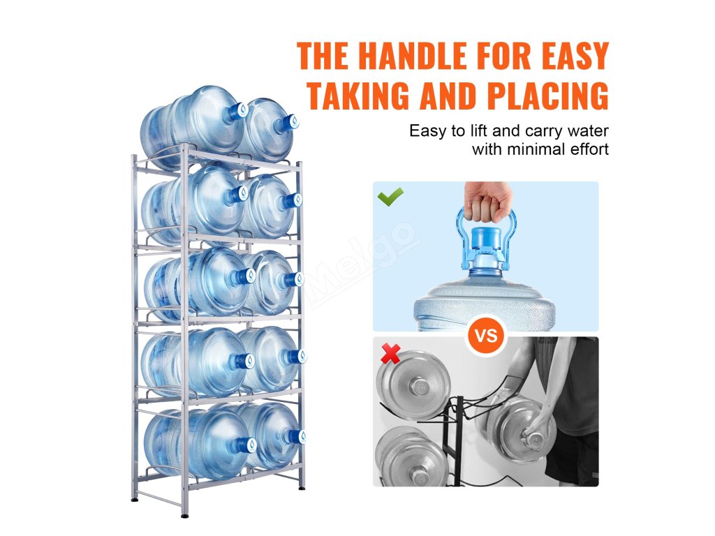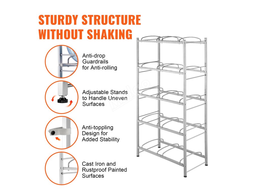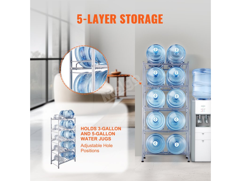 Stojan na džbány na vodu je ideální do obývacích pokojů, skladovacích prostor, kuchyní, garáží, spíží, šaten, prádelen, tělocvičen a kanceláří. Poskytuje efektivní řešení pro uložení více lahví.
