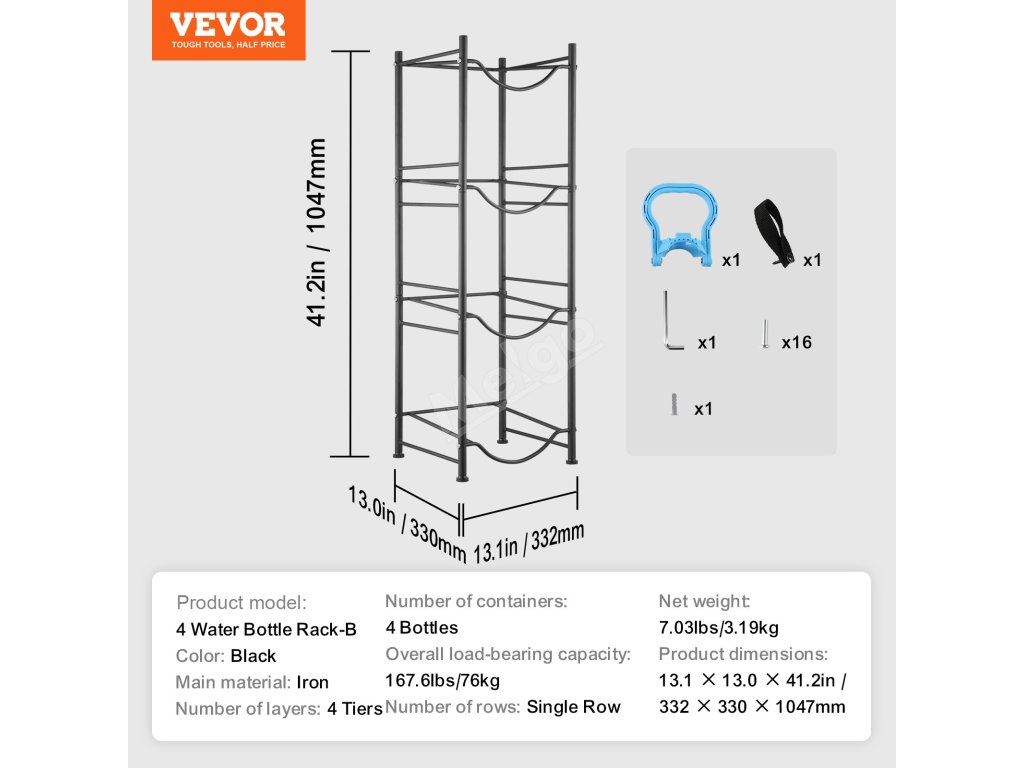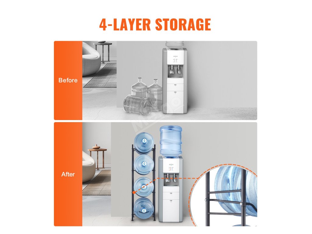 Stojan na 5 galonové láhve, jednořádkový, 4 místa pro kuchyni