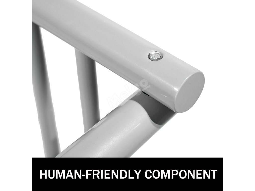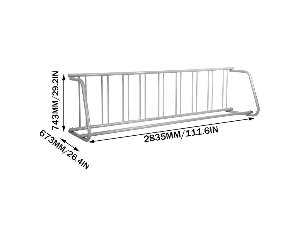 Tento stojan je jednostranný s dostatečnými rozestupy mezi trubkami pro pohodlné parkování jízdních kol. Pojme celkem 9 jízdních kol, což vám umožní ušetřit místo a udržet si pořádek.
