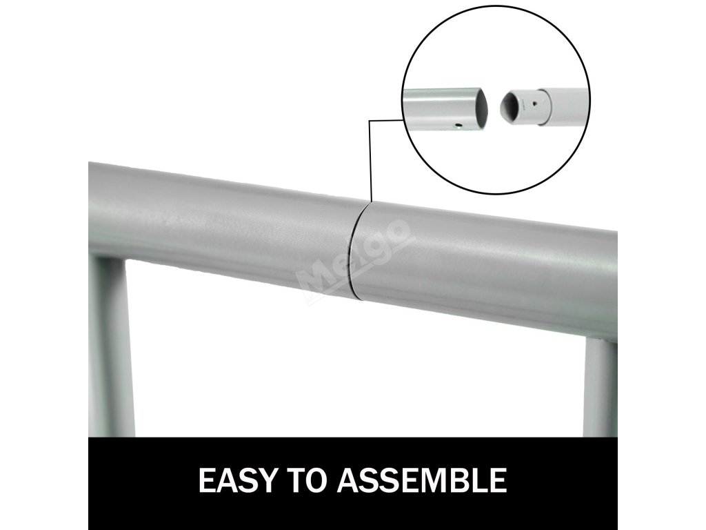 Náš stojan na kola je vyroben z pozinkované oceli s bílým práškovým lakem. To znamená, že je schopen odolávat nepříznivému počasí, odolávat rzi a dešti a zůstat odolný po dlouhou dobu používání.