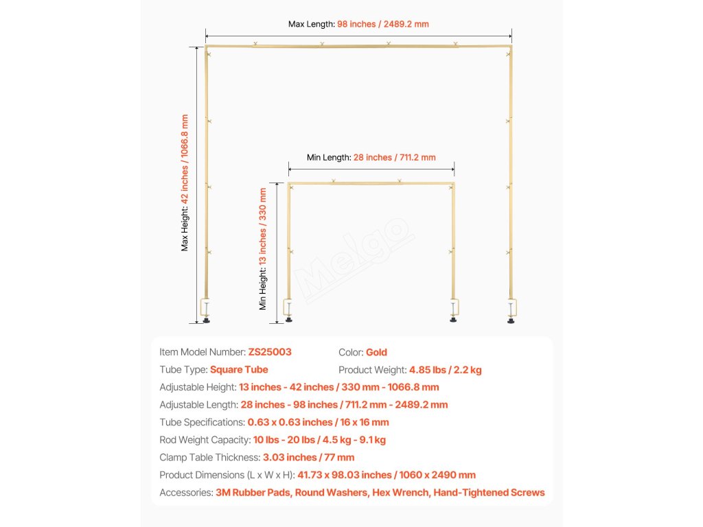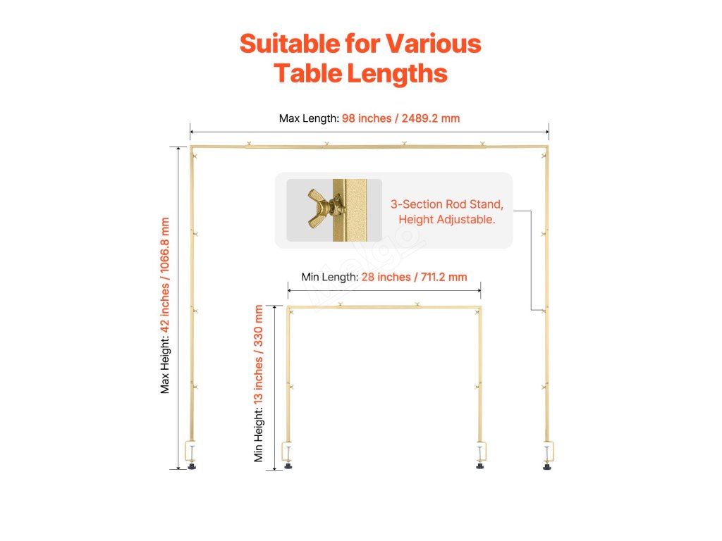 Stojan na balonový oblouk přes stůl, výška 13"-42", délka 28"-98" kovový