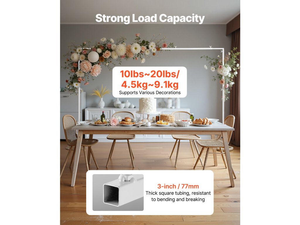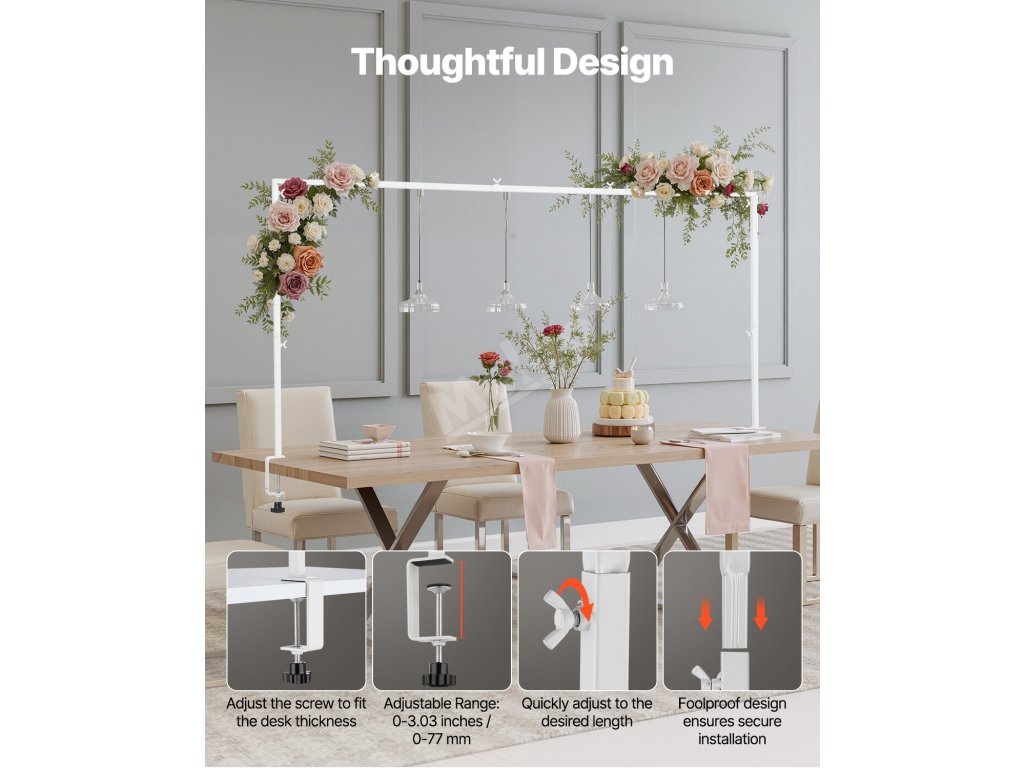 Tento robustní stojan na stolní tyč udrží dekorace o hmotnosti až 10 - 20 liber (4,5 kg - 9,1 kg), aniž by se převrátil. Díky třem nastavitelným výškám se hodí na různé velikosti stolů a je vhodný na svatby, narozeniny a další akce. Včetně příslušenství a úložné tašky pro snadné skladování, přepravu a ochranu.