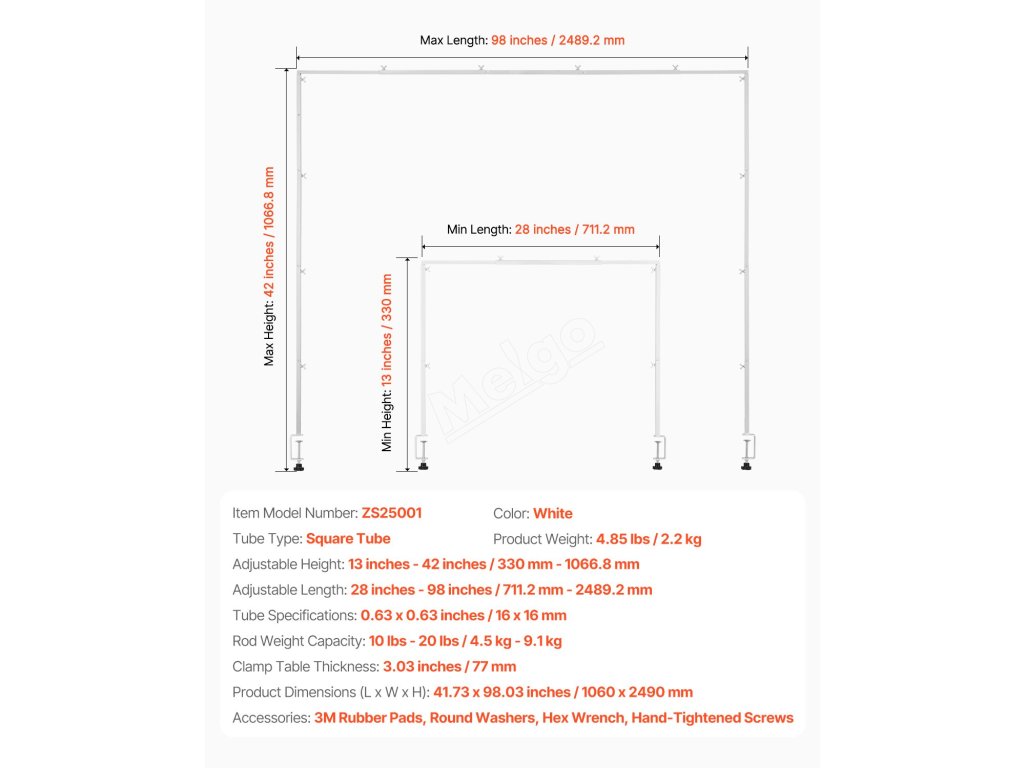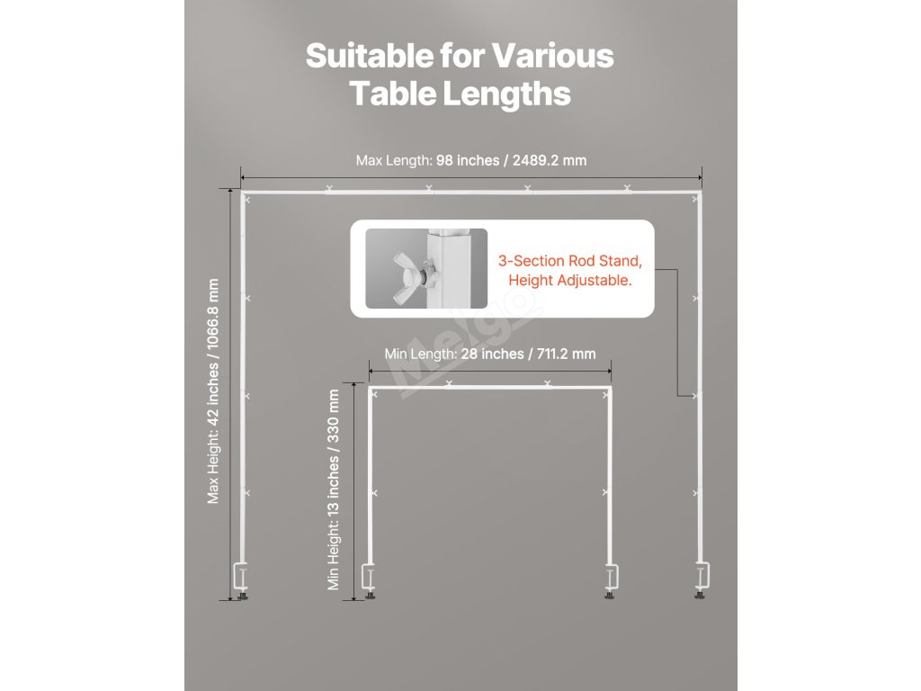 Díky ochranným podložkám na obou koncích je tento ocelový stolní obloukový stojan odolný proti poškrábání. Je vyroben z oceli o tloušťce 3 palce, je odolný proti tlaku a nastavitelný (20 - 70 palců). Jeho prášková povrchová úprava odolává korozi a dokonale ladí s tmavým nábytkem.